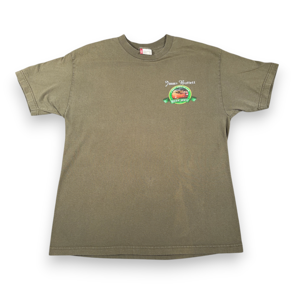 Vintage Jimmy Buffett Shirt Adult LARGE Green Band Tour Salty Land Levis Y2K