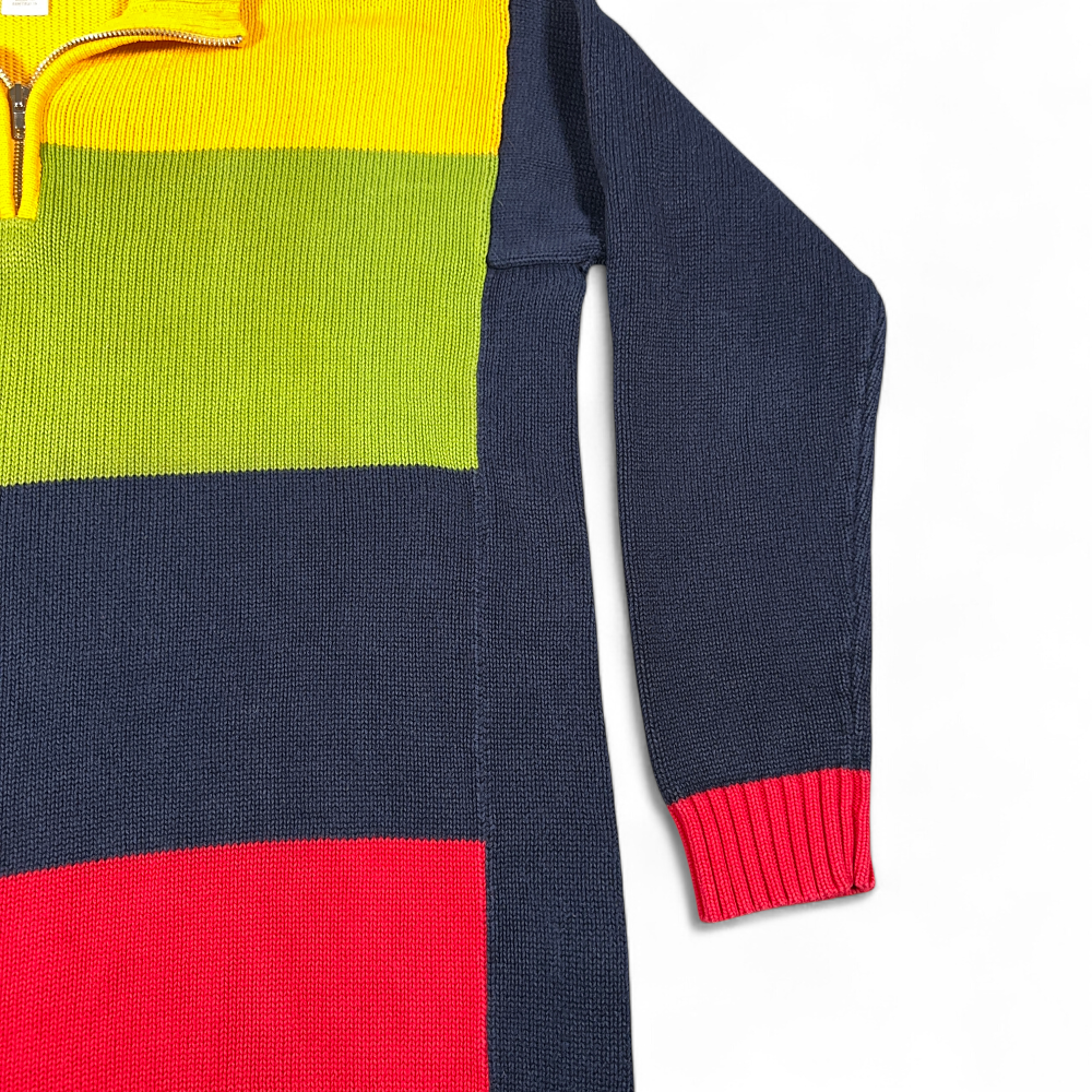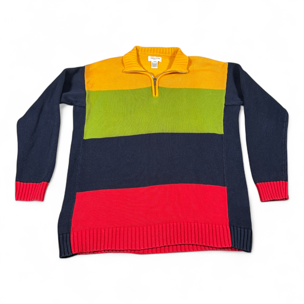 Vintage Jones New York Sweater Womens MEDIUM Blue Colorblock Quarter Zip 90s