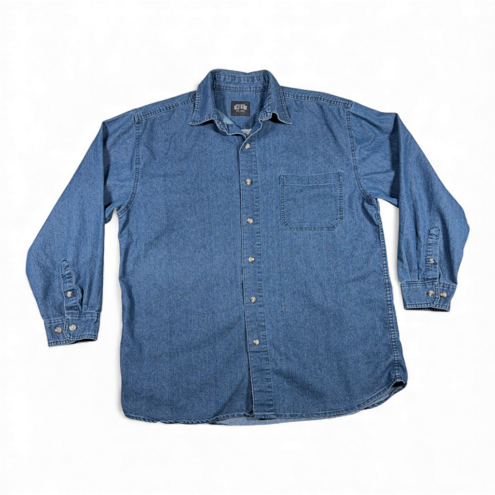 Vintage Key Shirt Adult LARGE Blue Chambray Workwear Outdoor Denim Style Y2K