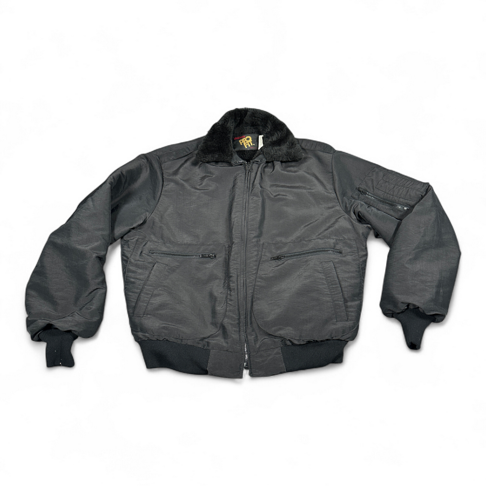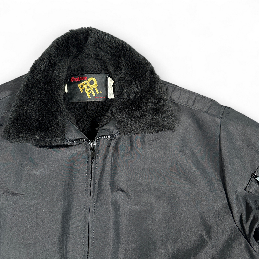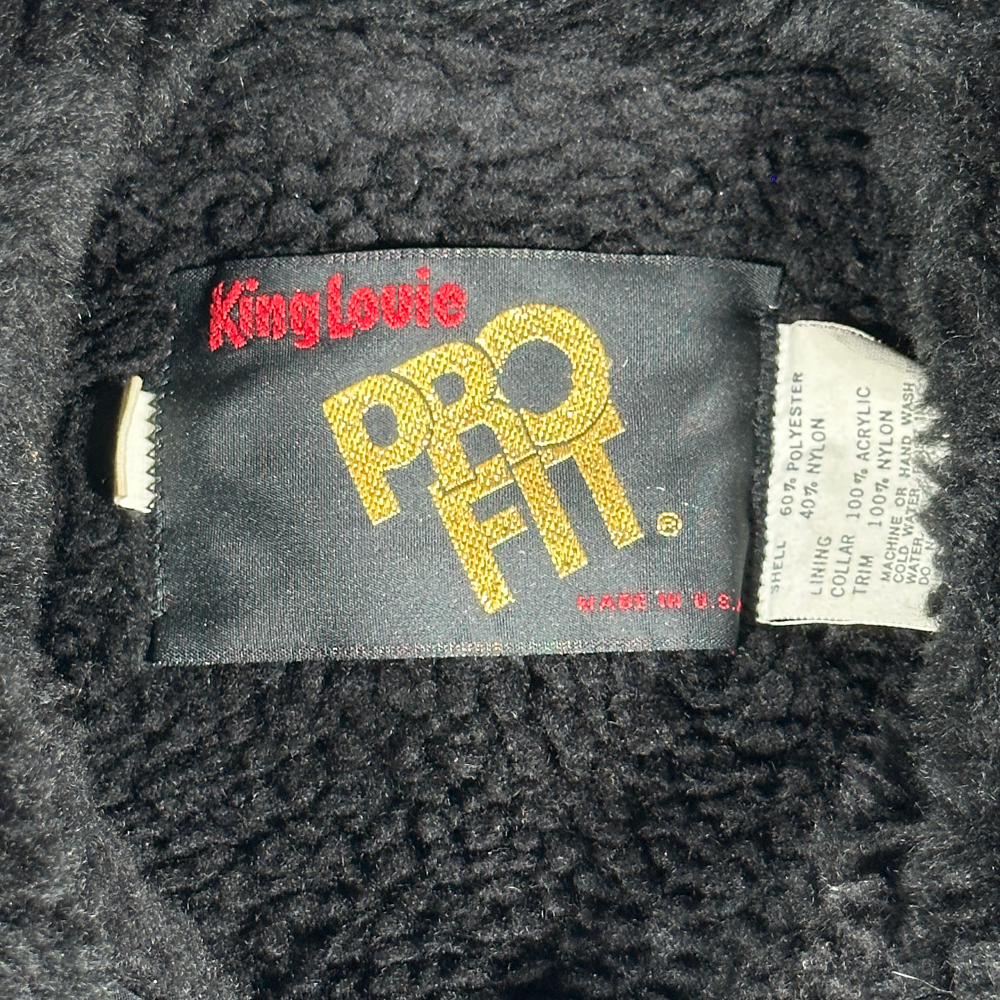 Vintage King Louie Jacket Adult LARGE Black Bomber Sherpa Fur Collar USA 80s
