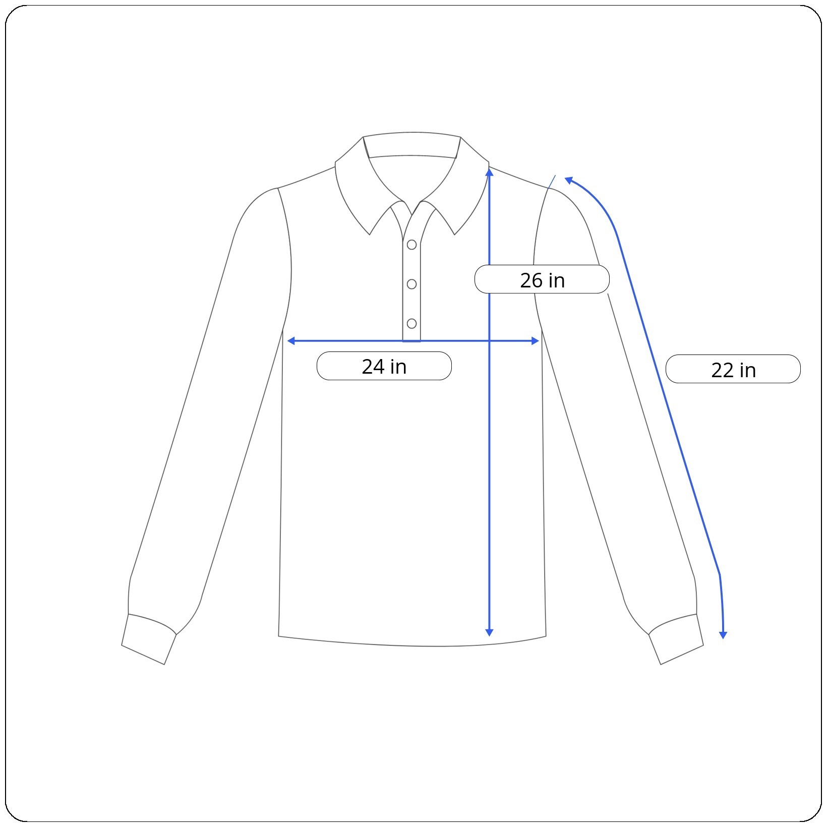 Sleeves: 22 inches (shoulder seam to cuff end)