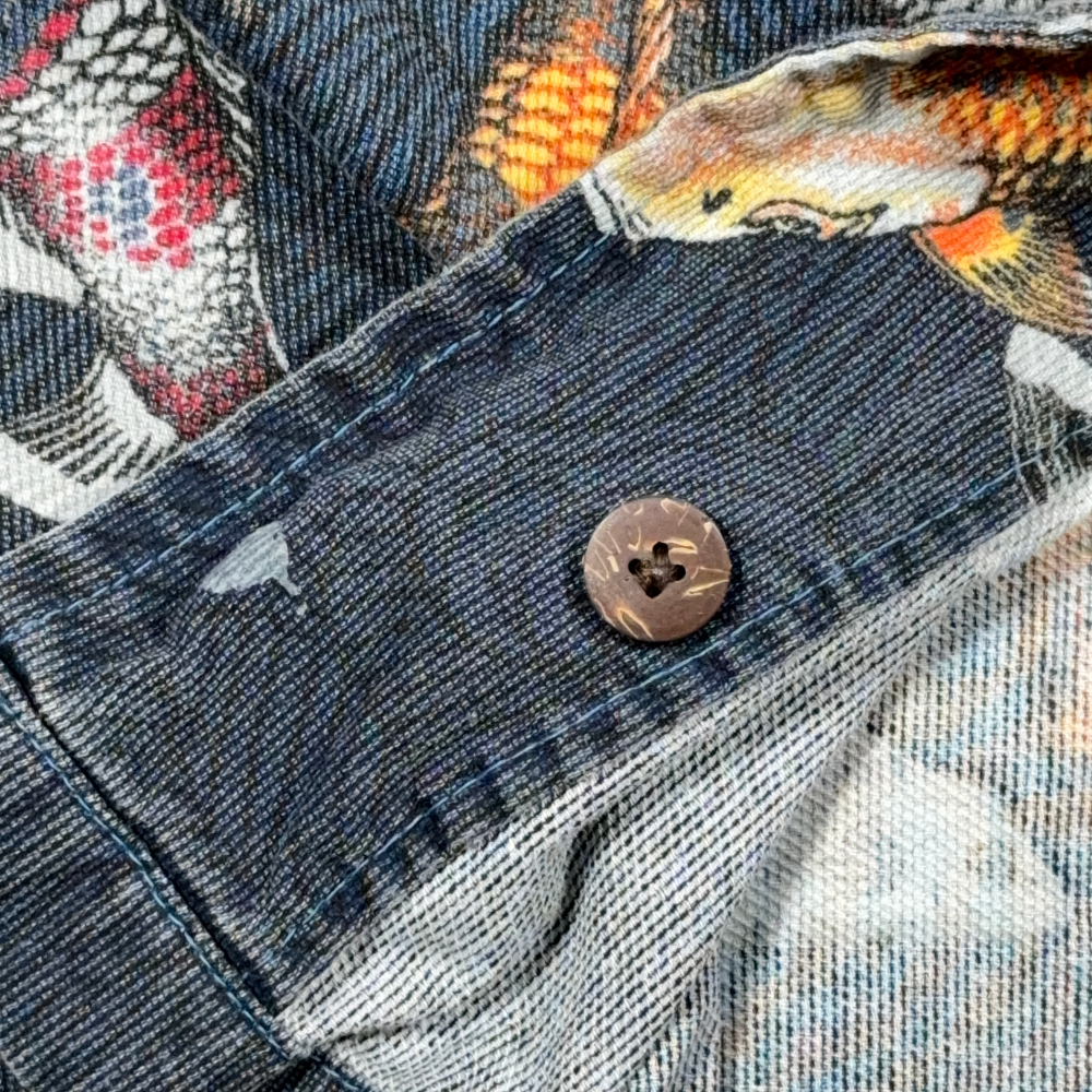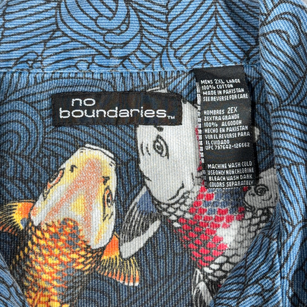 Vintage Koi Fish Shirt Adult 2XL Blue Japanese Seigaiha Waves No Boundaries Y2K