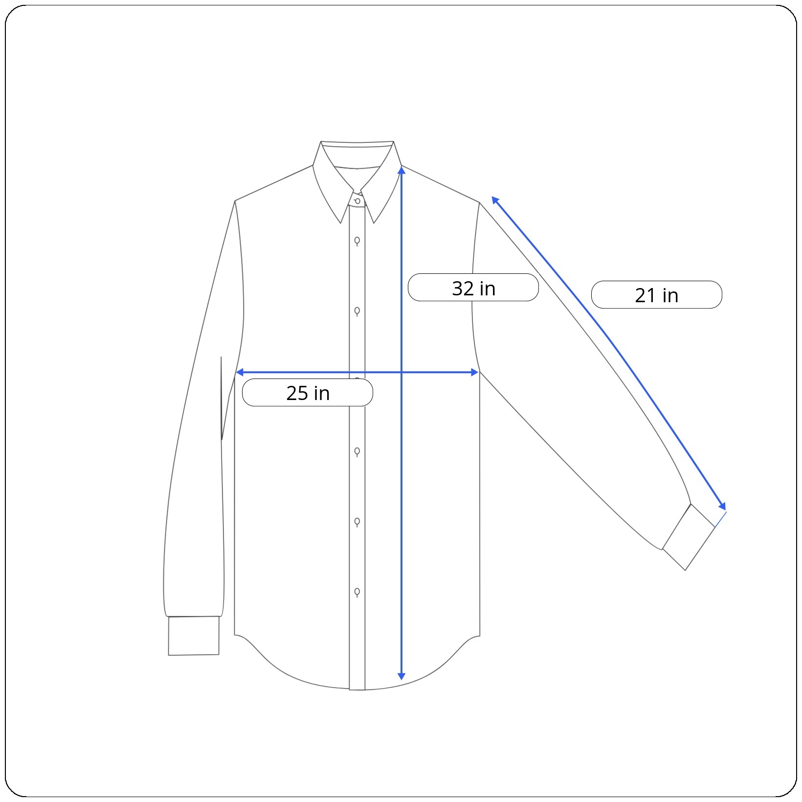 Sleeves: 21 inches (shoulder seam to cuff end)