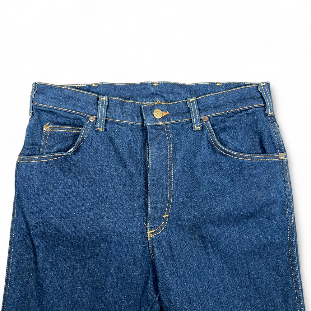 Vintage Lee Riders Jeans Mens 33×30 Blue Flare Leg Dark Wash Talon Zip USA 80s