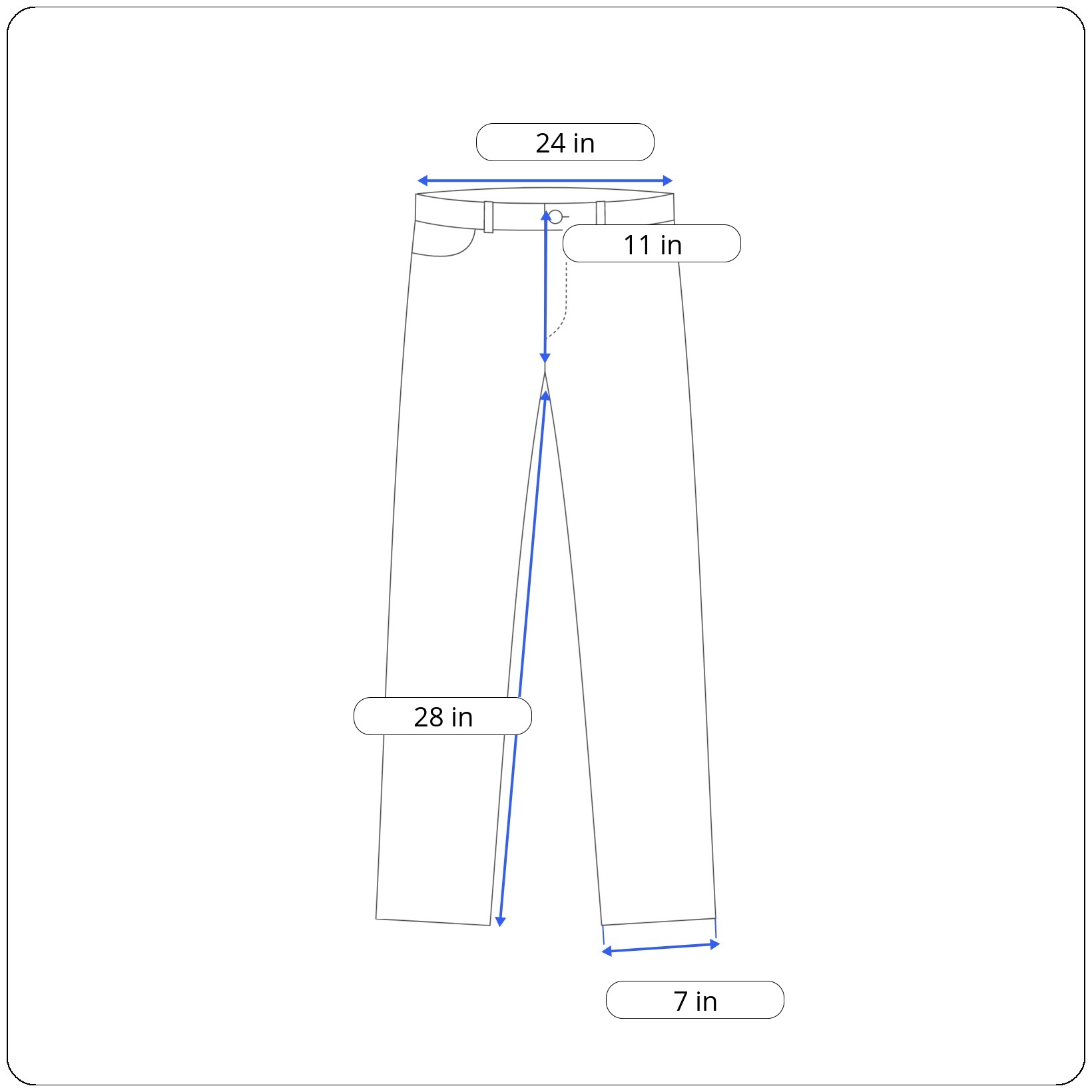 Rise: 11 inches (crotch to top of waistband)