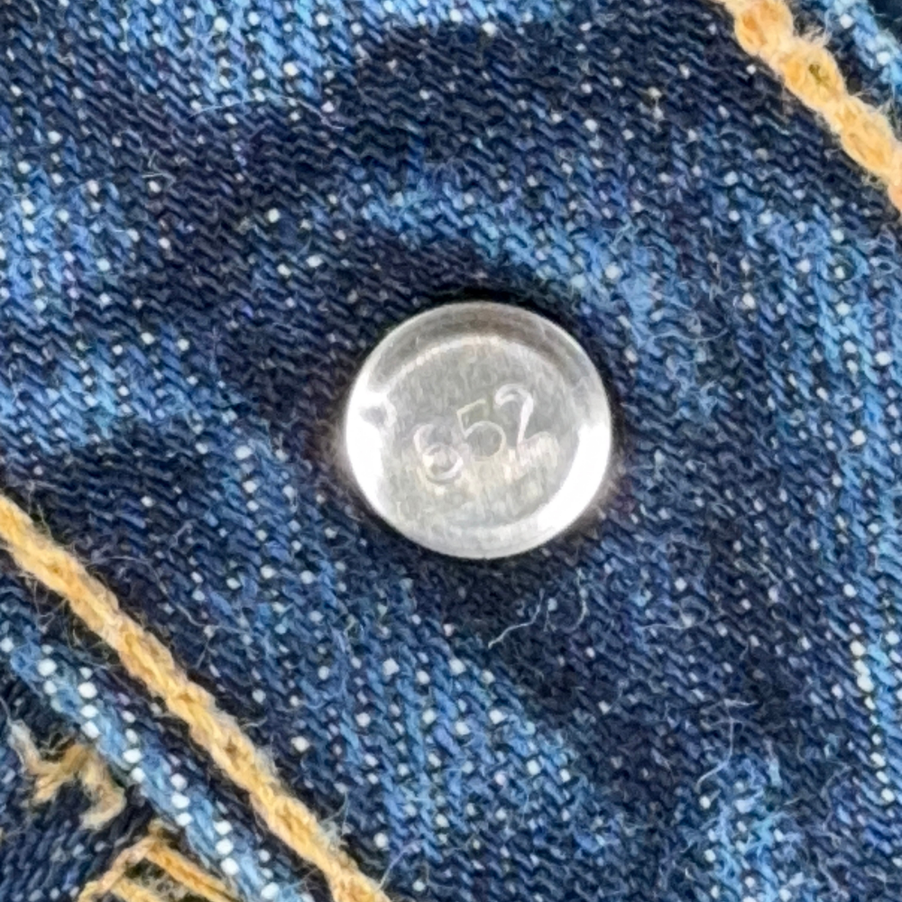 – Vintage Y2K dark wash blue cotton denim jeans with minimal fading & light patina throughout