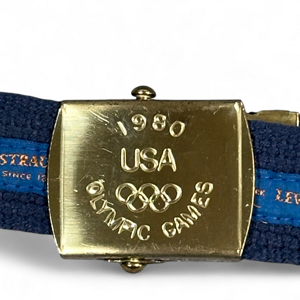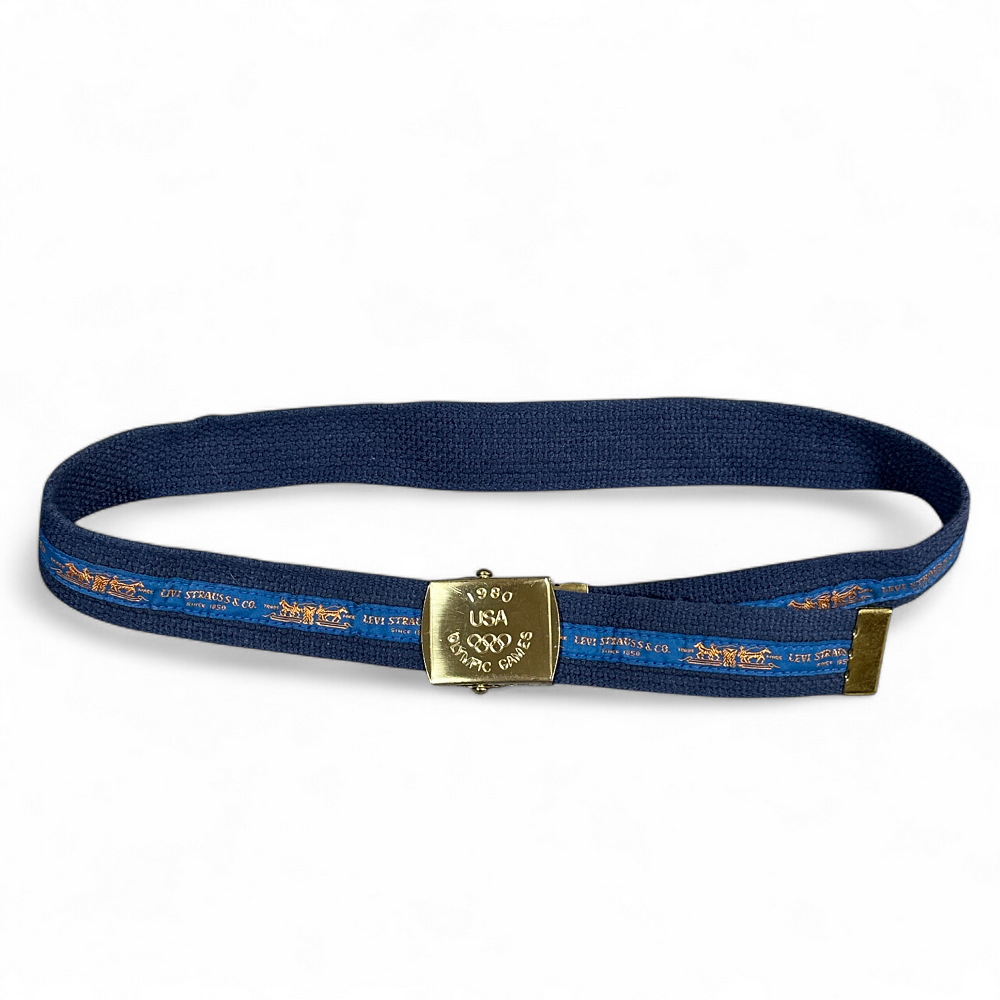 Vintage Levis Belt Mens 30 Blue Canvas Slide 1980 Olympic Games USA 80s