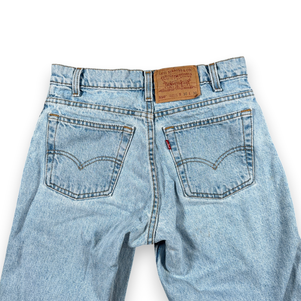 Vintage Levis Jeans Mens 28×30 Blue 550 Relaxed Fit Tapered Light Wash Fade 90s