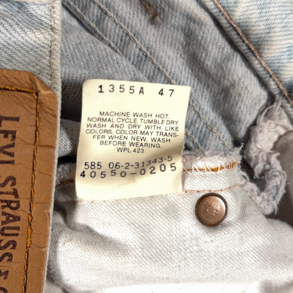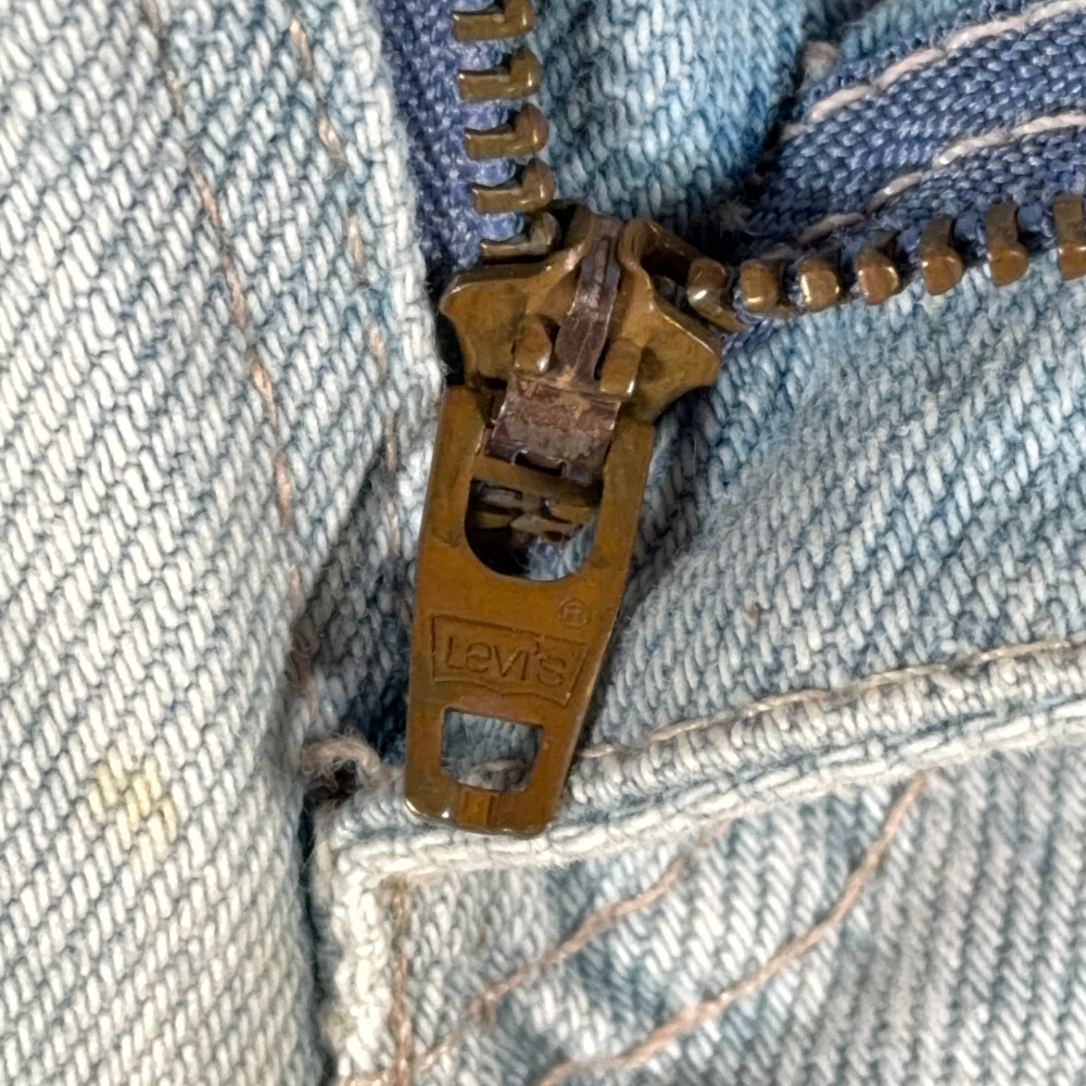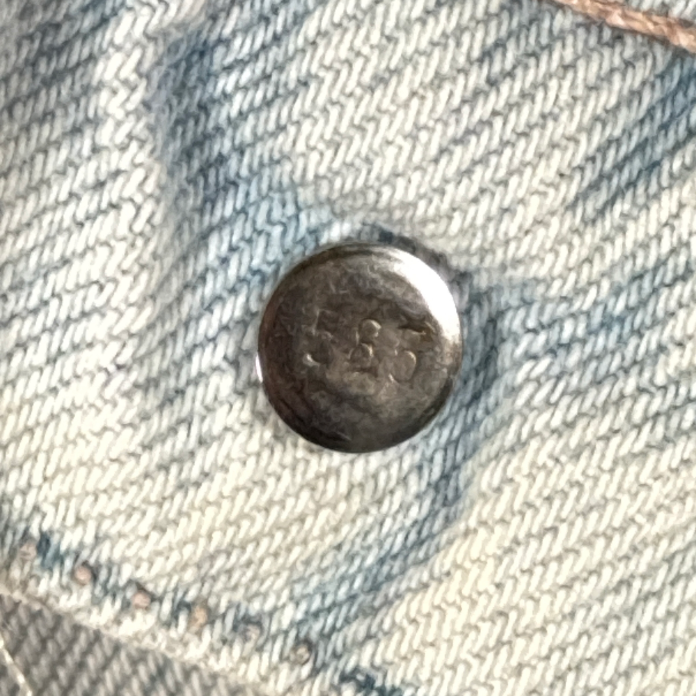 – Stone wash with heavy fading throughout & sun-bleached patina