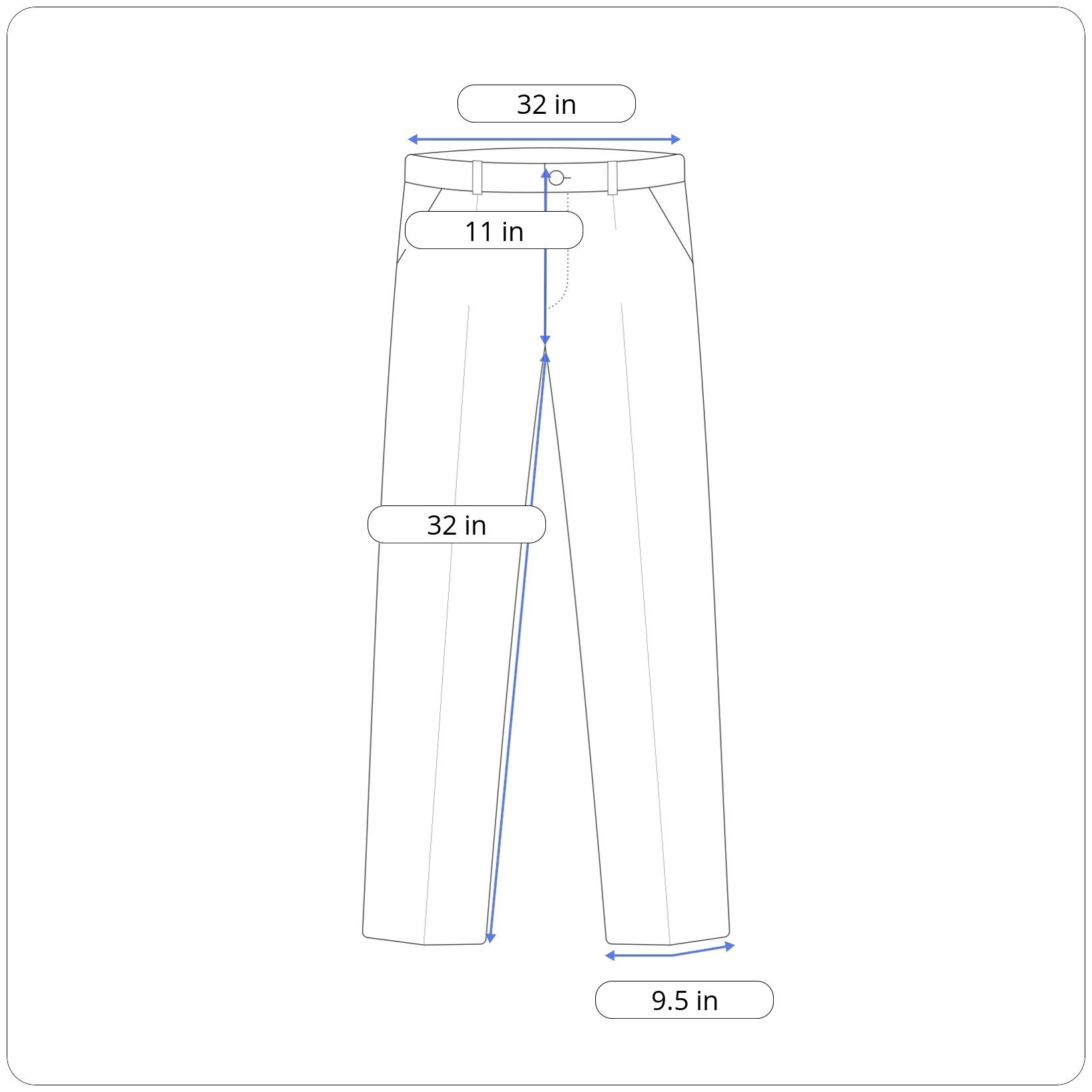 Inseam: 32 inches (crotch to bottom leg opening)