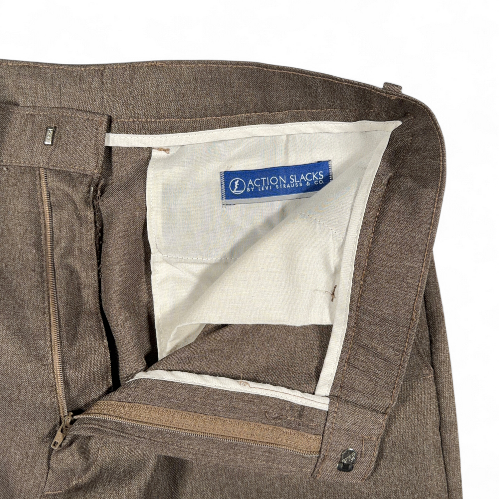 Vintage Levis Pants Mens 34×26 Brown Action Slacks Dress Polyester Altered 80s