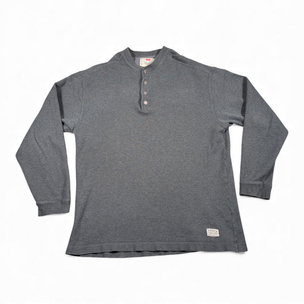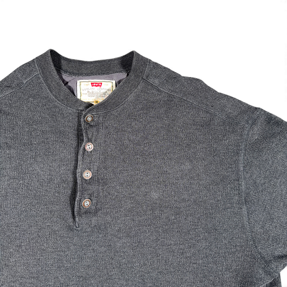 Vintage Levis Shirt Adult MEDIUM Gray Henley Ribbed Pullover Outdoor Work 90s