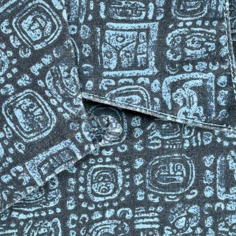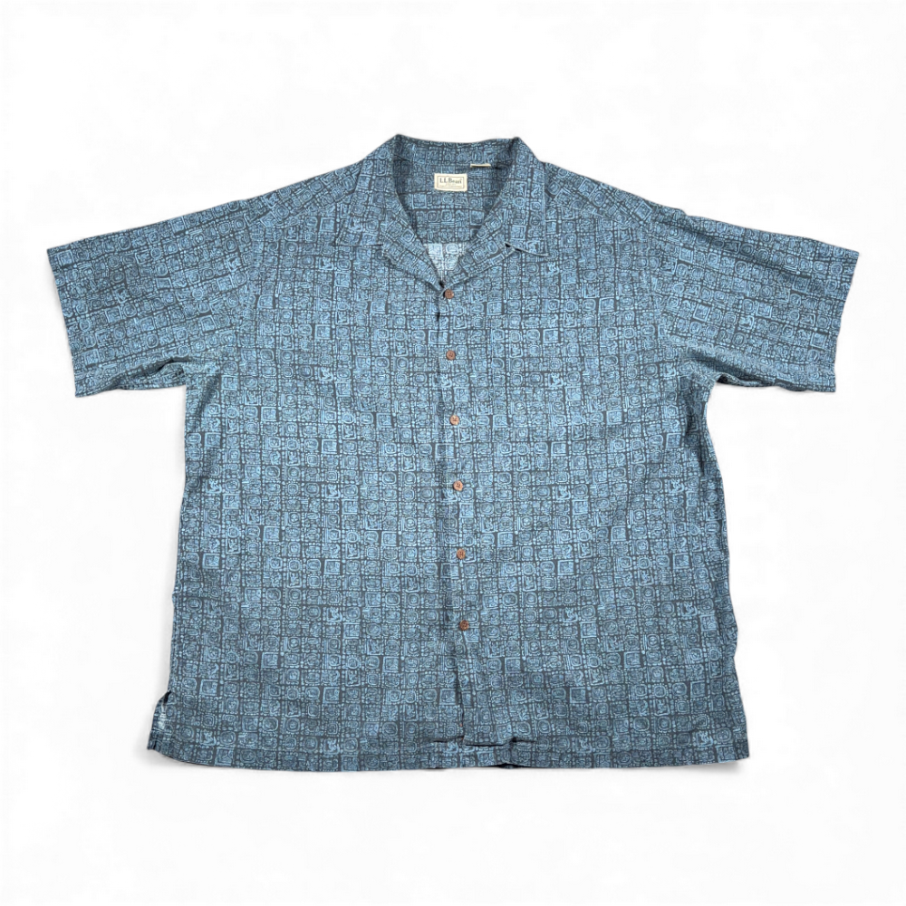 Vintage LL Bean Shirt Adult EXTRA LARGE Blue Mayan Aztec Tribal Camp Print Y2K