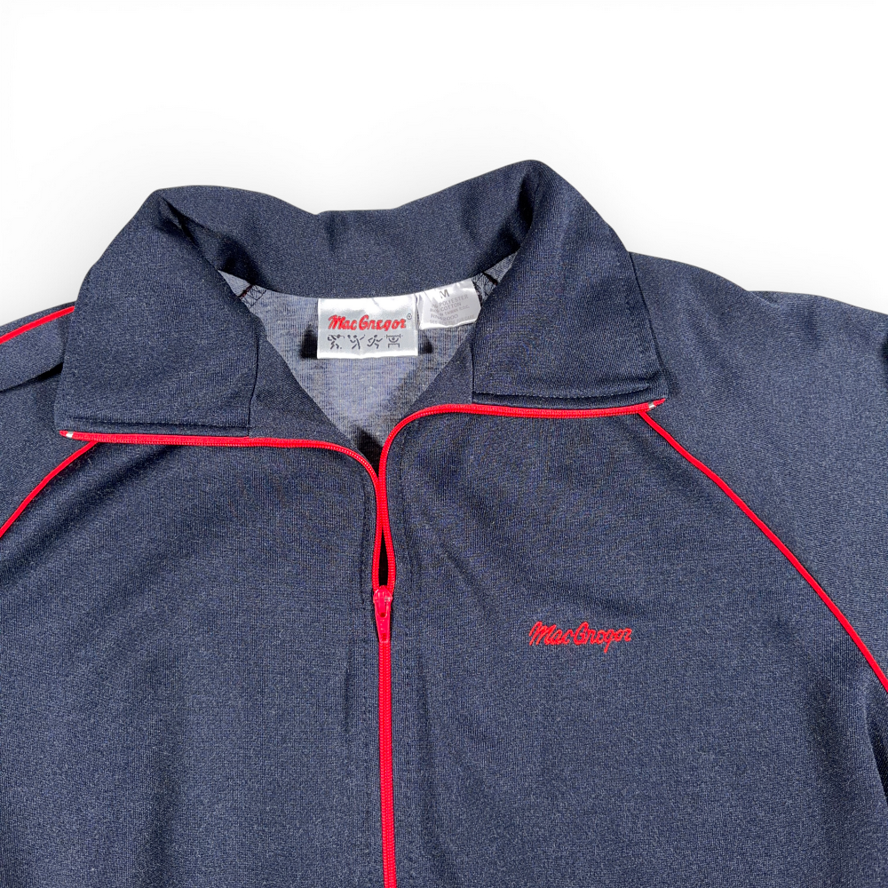 Vintage MacGregor Jacket Adult MEDIUM Blue Track Full Zip Red Piping Raglan 80s