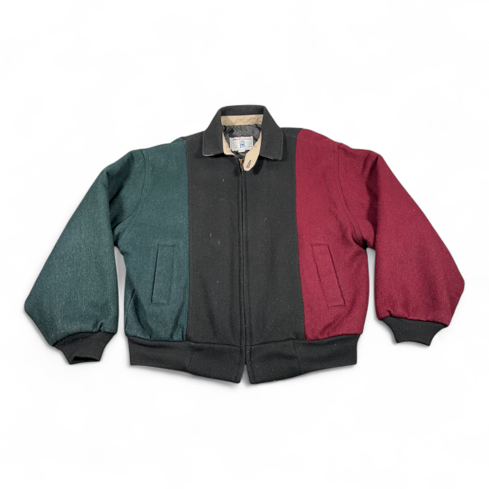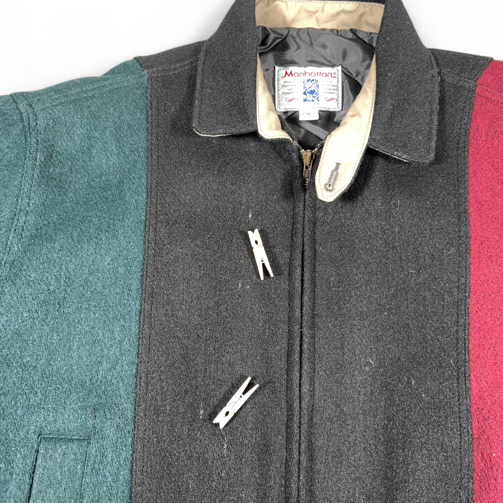 Vintage Manhattan Jacket Adult EXTRA LARGE Black Colorblock Wool Bomber USA 90s