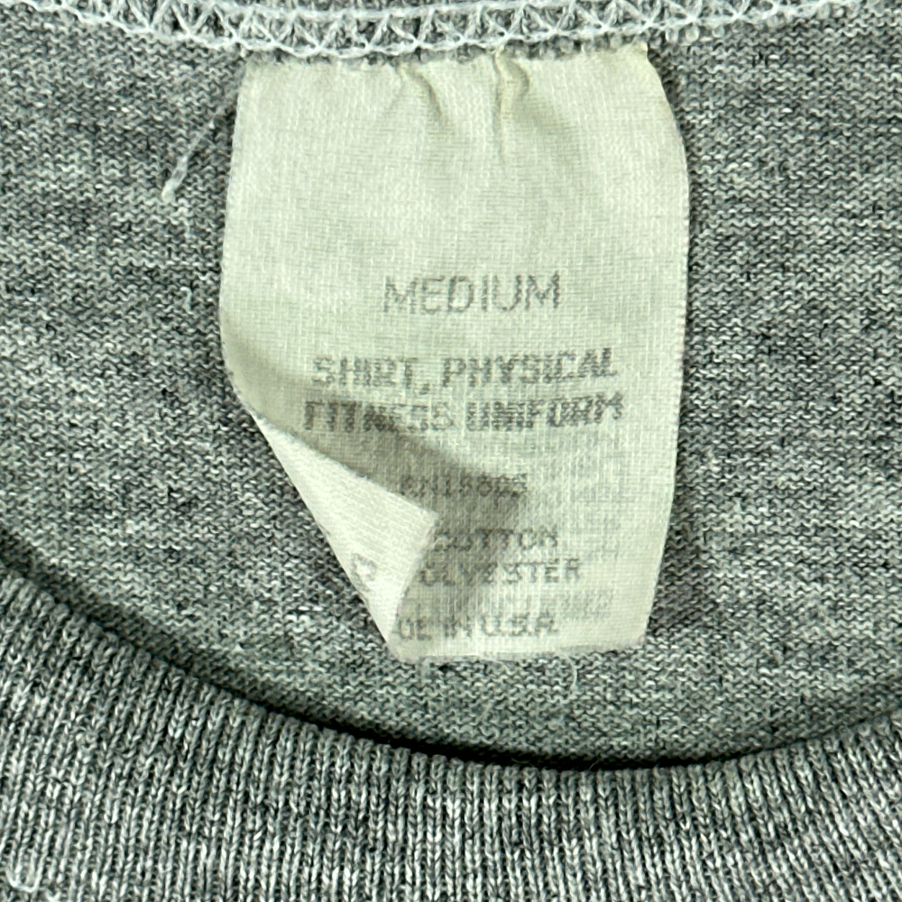 โข Heather gray cotton polyester blend single stitch tee.