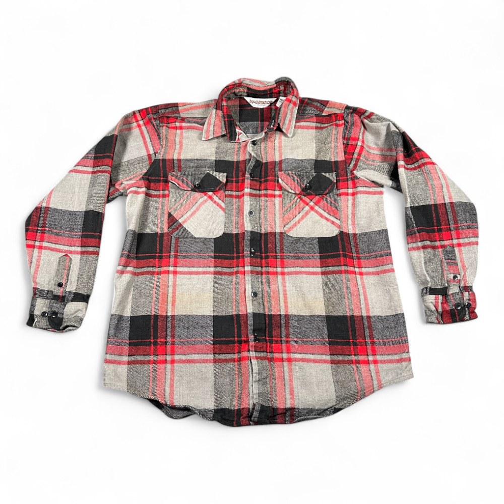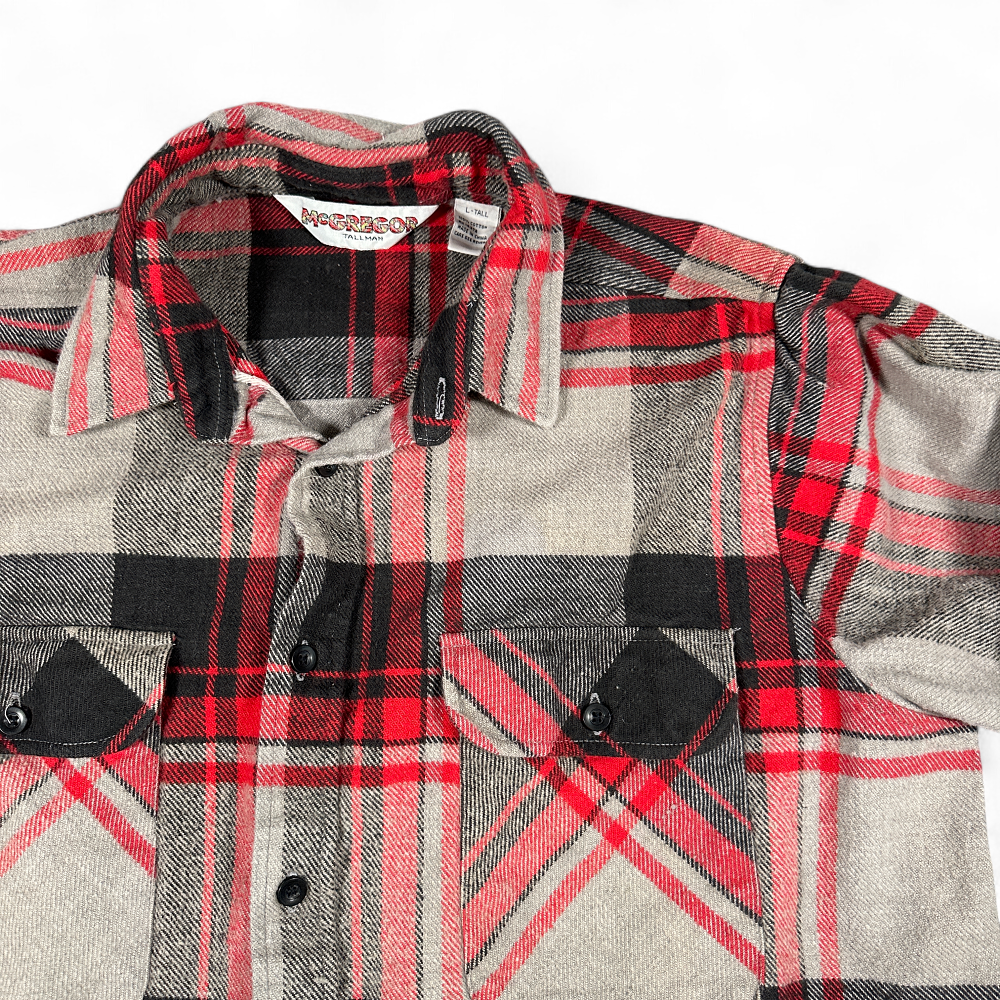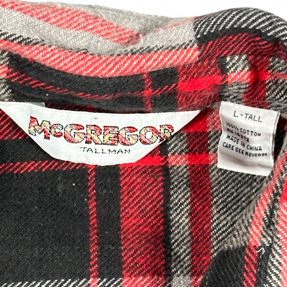 Vintage McGregor Shirt Adult LARGE TALL Gray Plaid Flannel Cotton Workwear 80s