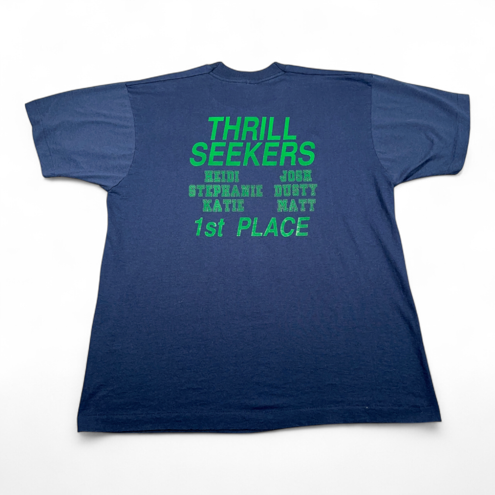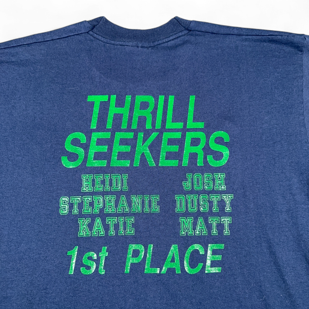 โ€ข Back graphic reads “THRILL SEEKERS” followed by a list of names (Heidi, Josh, Stephanie, Dusty, Katie, Matt) and “1st PLACE”
