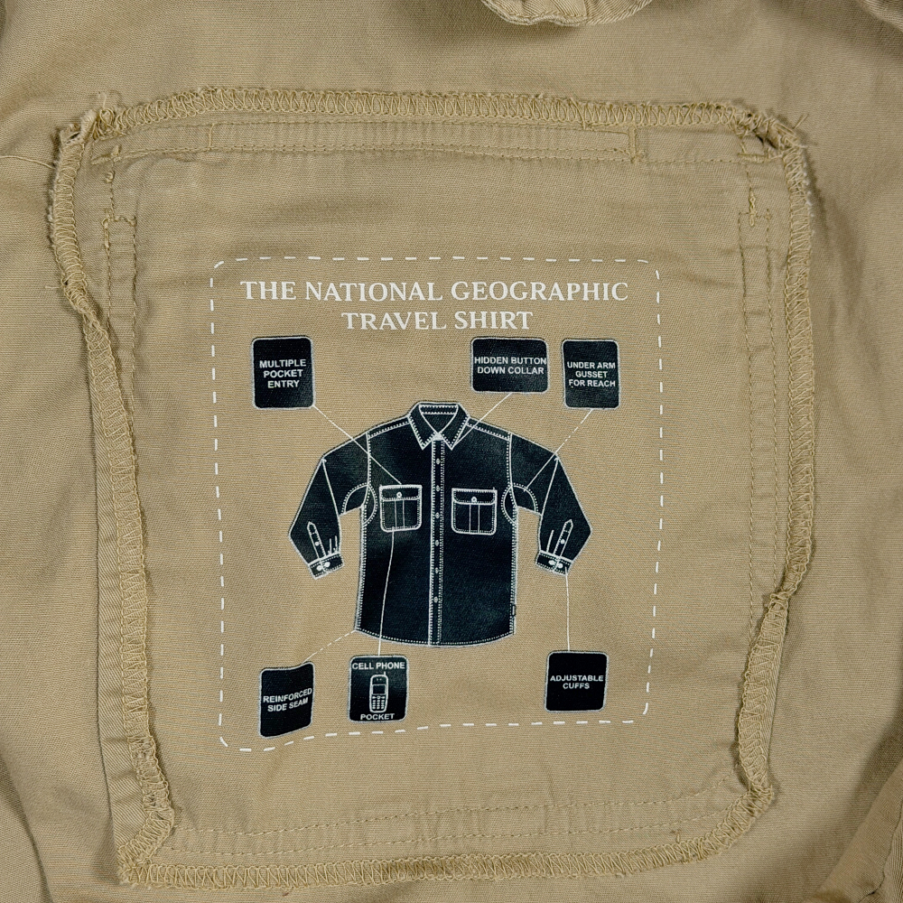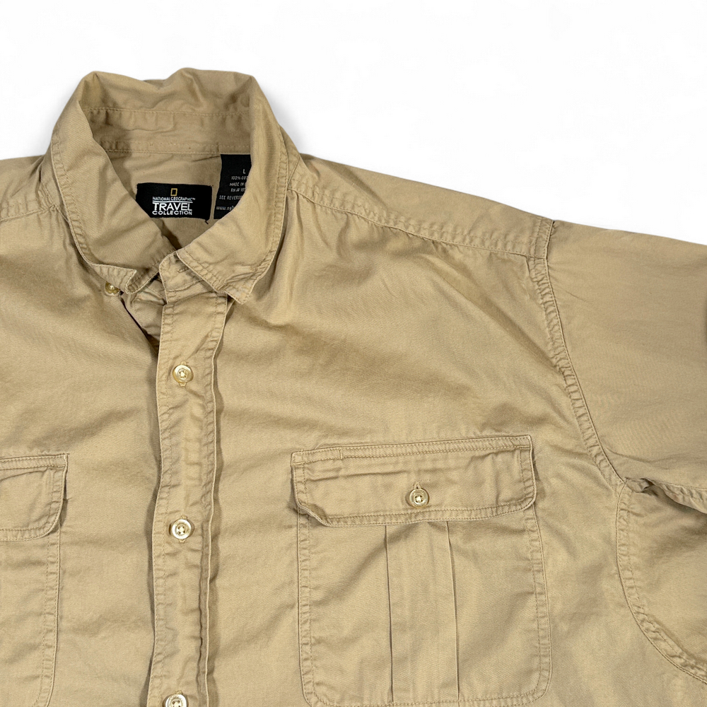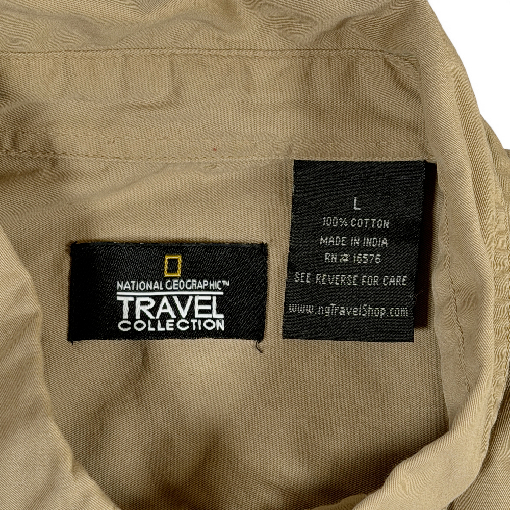 Vintage National Geographic Shirt Adult LARGE Brown Safari Travel Collection Y2K