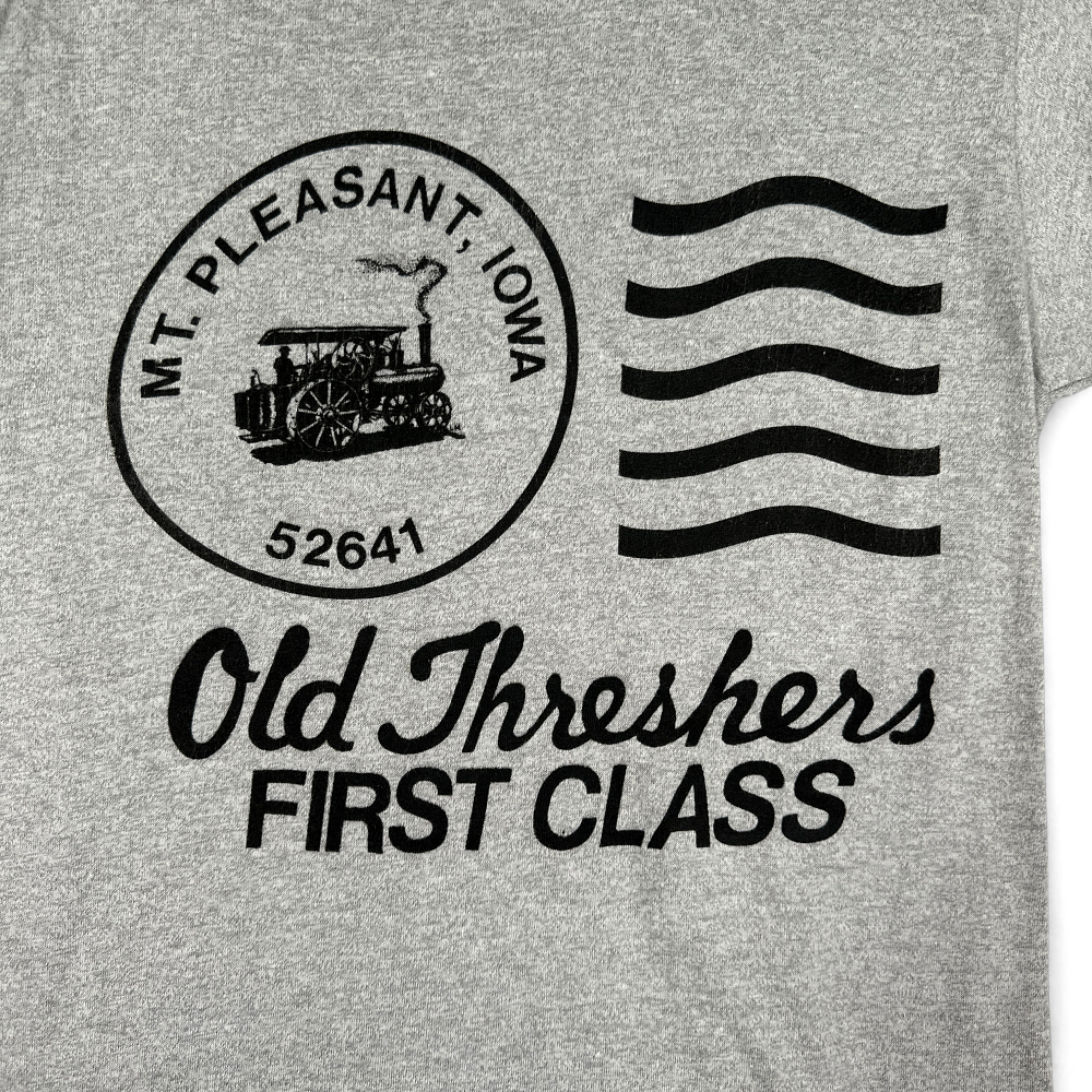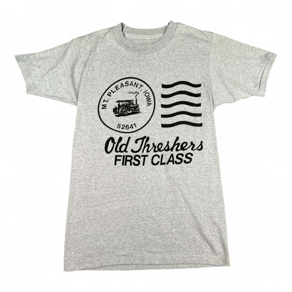 Vintage Old Threshers Shirt Gray Midwest Iowa Farm 80s Adult EXTRA SMALL