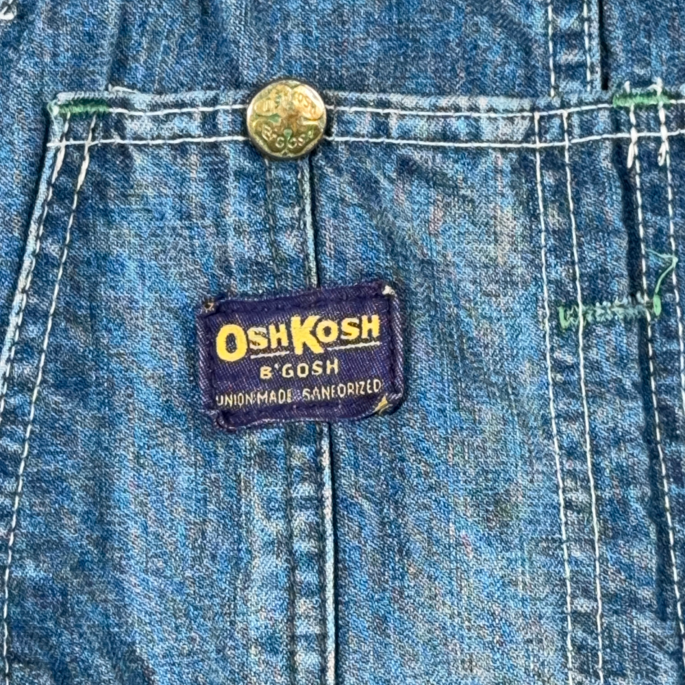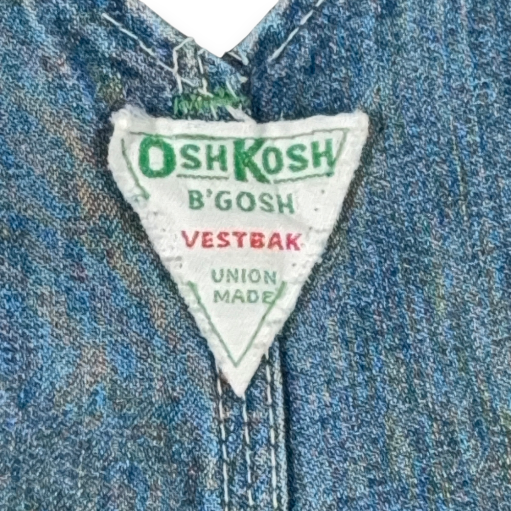 • OshKosh B’Gosh tags with “VESTBAK” and “UNION MADE SANFORIZED”