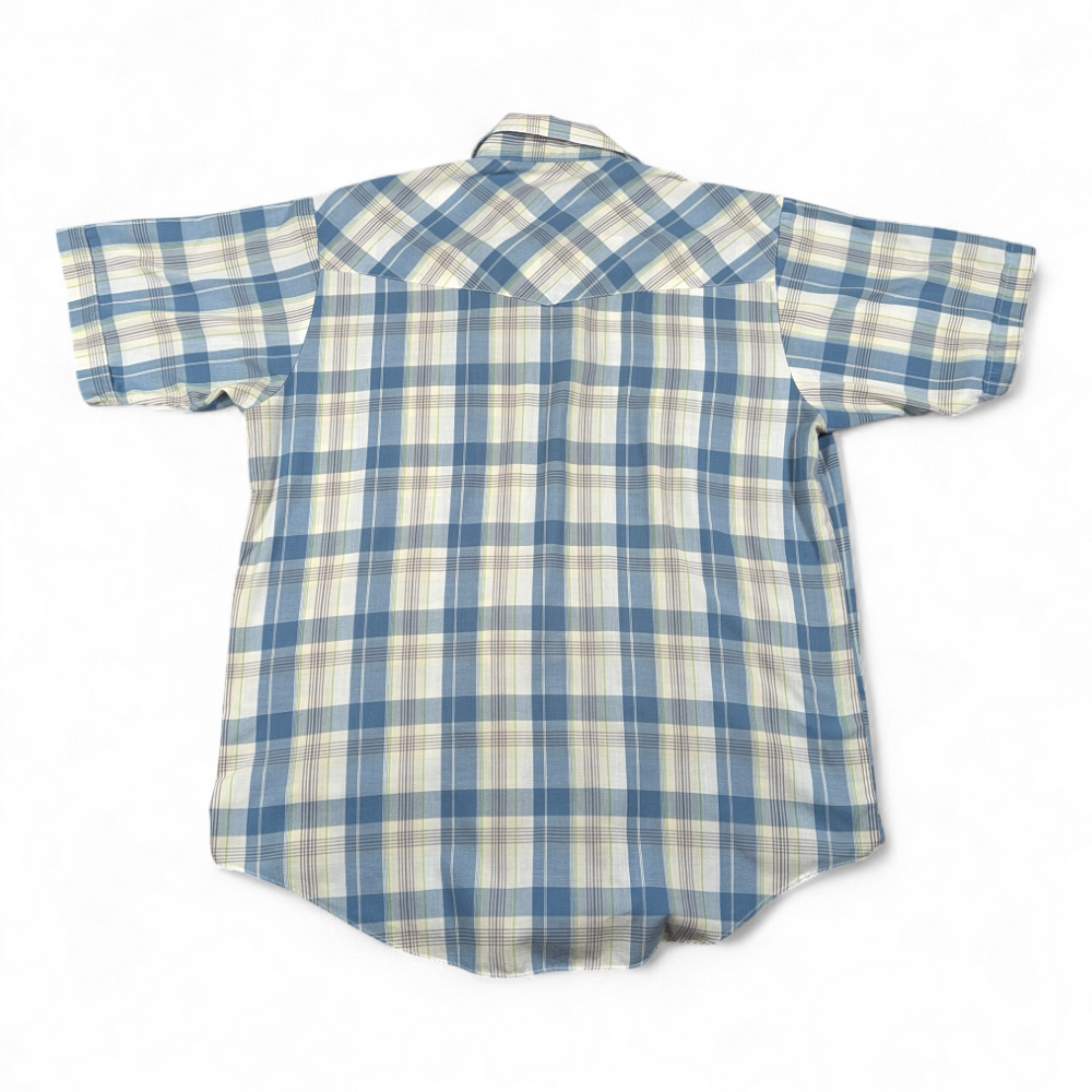 Vintage Plains Western Shirt Adult LARGE Blue Plaid Pearl Snap 90s