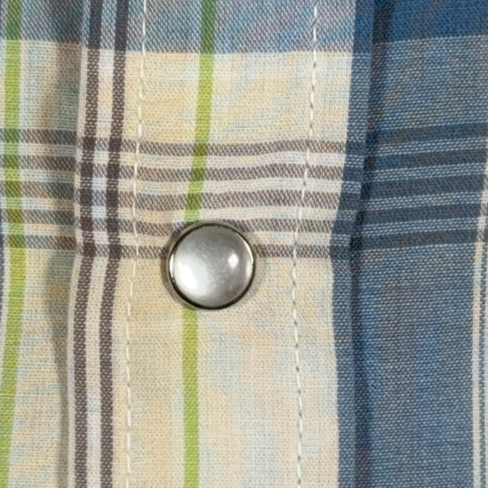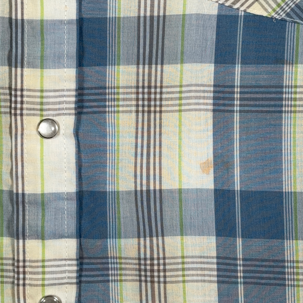 Vintage Plains Western Shirt Adult LARGE Blue Green Plaid Pearl Snap Cowboy 90s