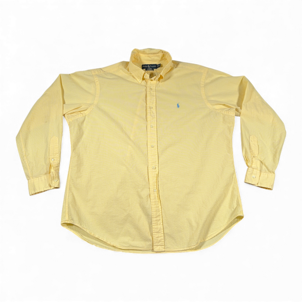 Vintage Polo Ralph Lauren Shirt Adult EXTRA LARGE Yellow Stripe Seersucker 90s