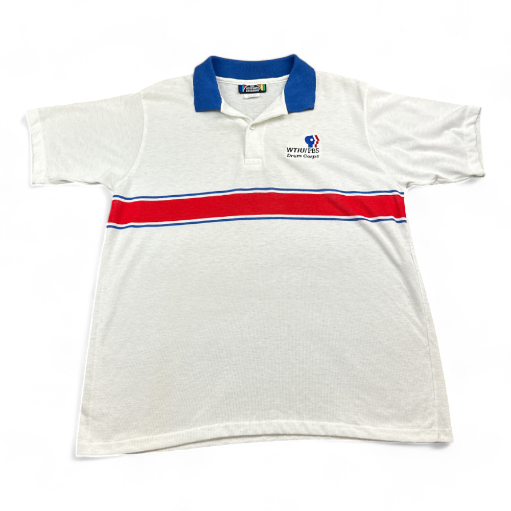 Vintage Public Broadcasting Service PBS Polo Shirt Drum Corps WTIU 80s Adult MEDIUM