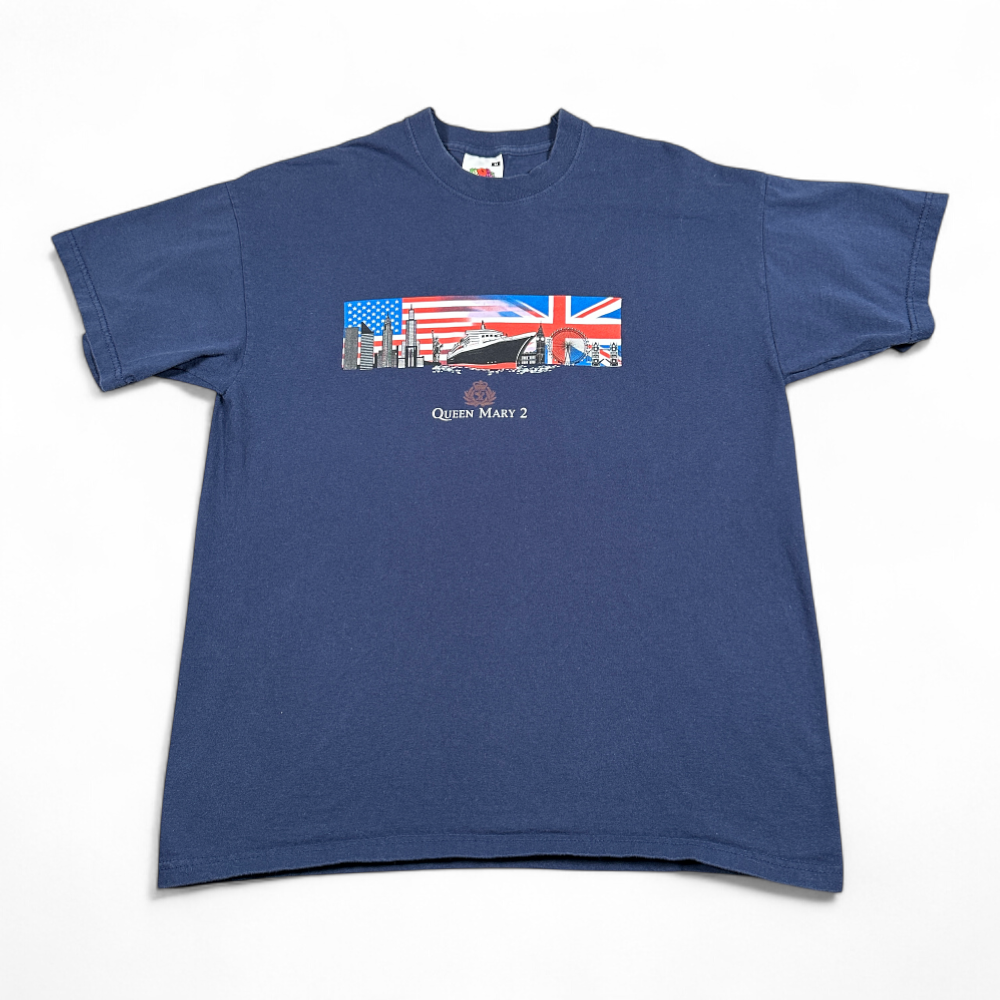 Vintage Queen Mary 2 Shirt Adult MEDIUM Blue Transatlantic Ocean Liner Ship Y2K