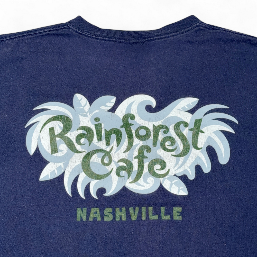 โข Large back graphic “Rainforest Cafe” with nature elements and “NASHVILLE”