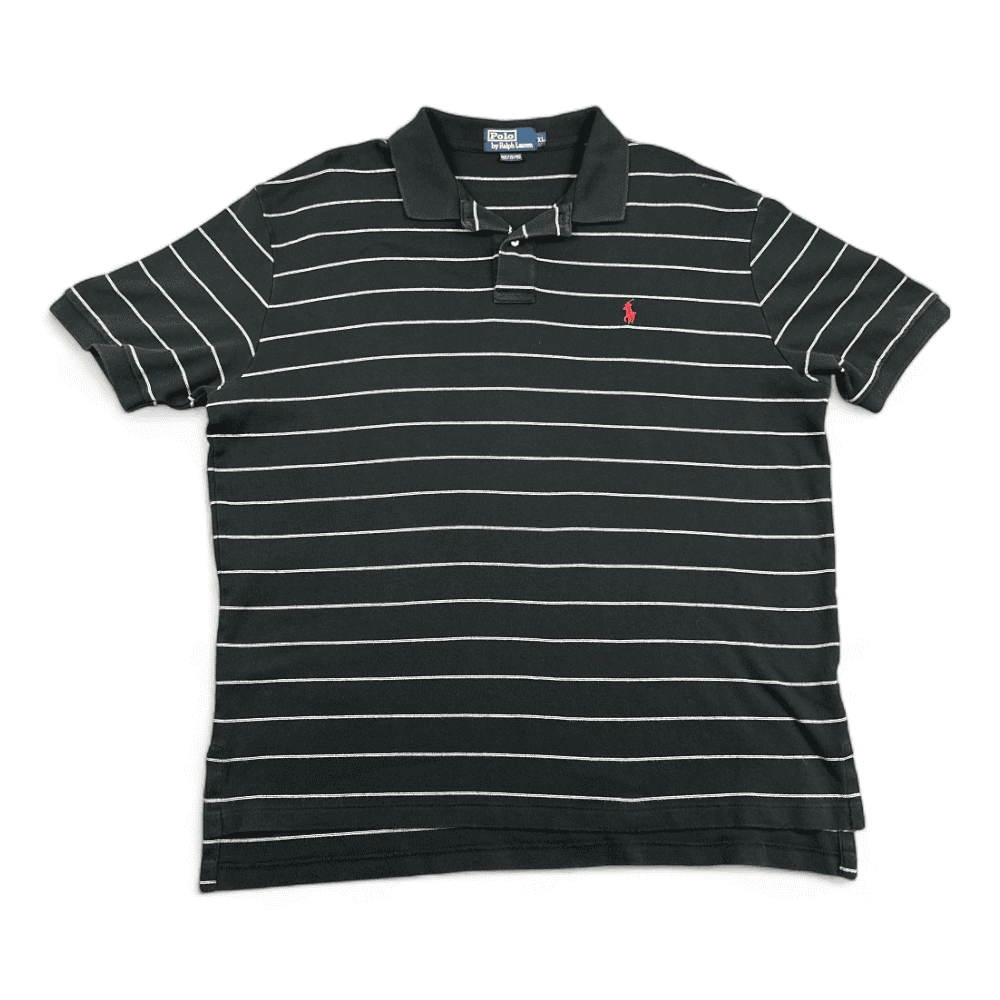 Vintage Ralph Lauren Polo Shirt Black White Stripes 90s Adult EXTRA LARGE