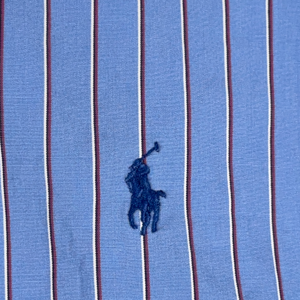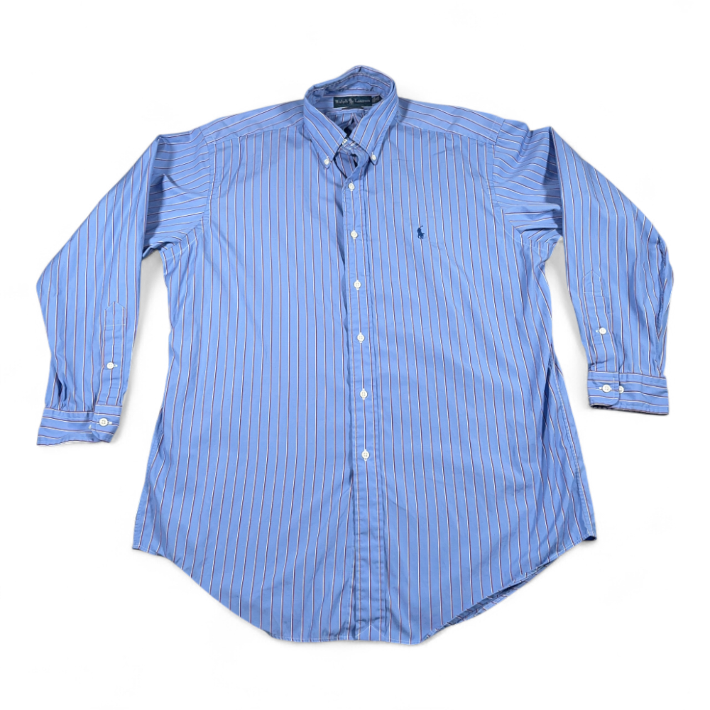 Vintage Ralph Lauren Shirt Adult LARGE Blue Striped Classic Fit Pony Logo Y2K