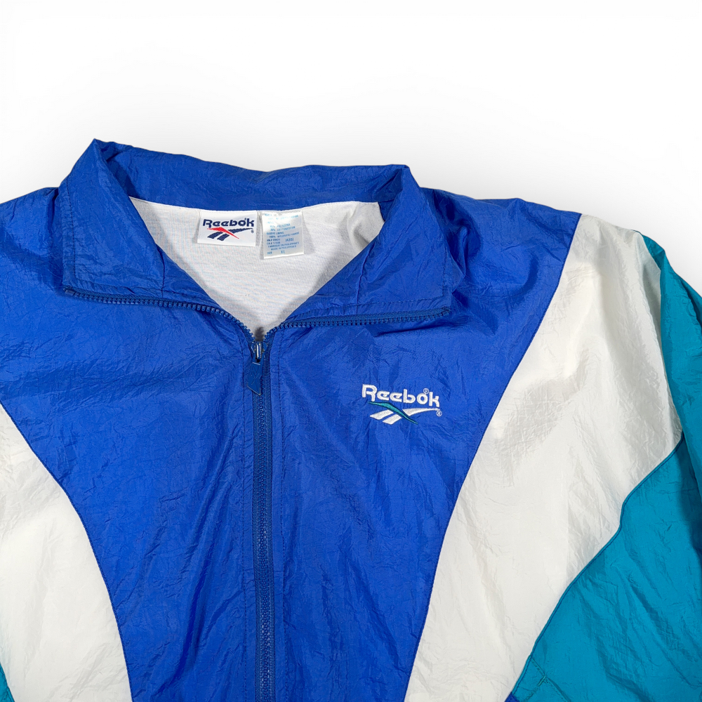 Vintage Reebok Jacket Adult EXTRA LARGE Blue White Windbreaker Colorblock 90s