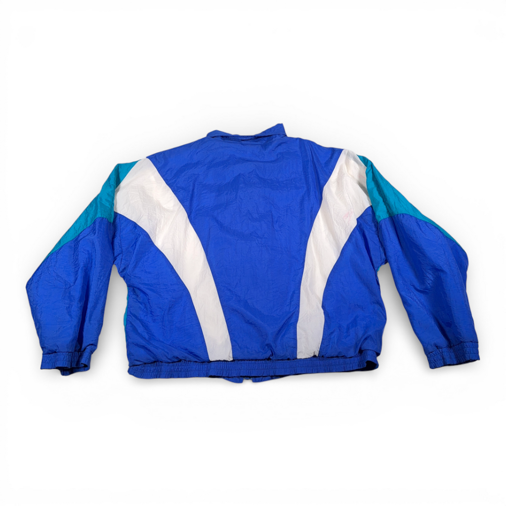 โข 90s vintage blue, teal, and white nylon shell jacket