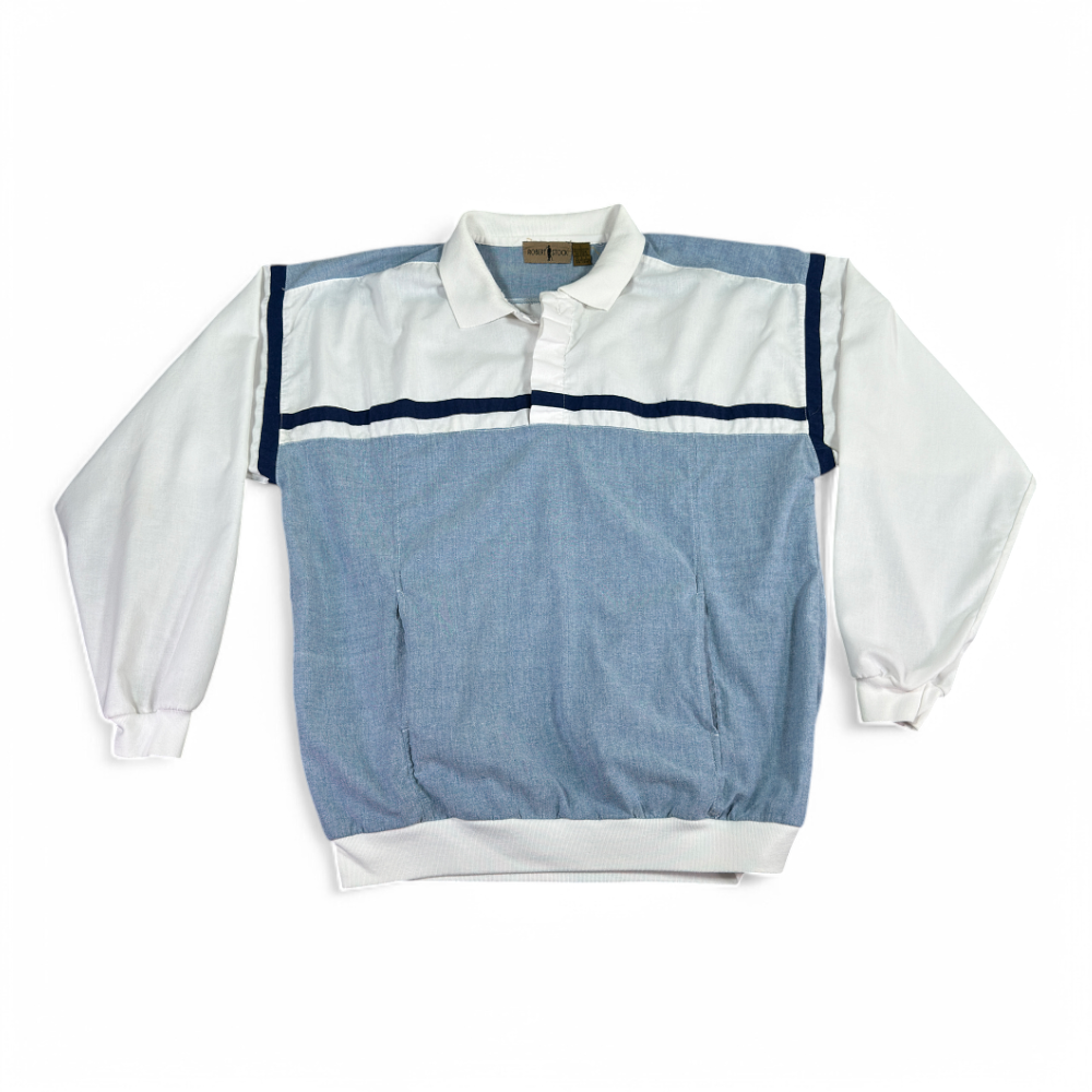Vintage Robert Stock Polo Shirt Adult LARGE White Blue Banded 90s