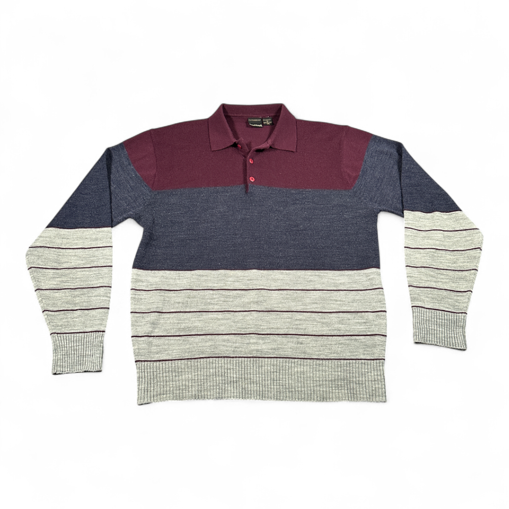 Vintage Royal Knight Polo Shirt Adult MEDIUM Gray Colorblock Striped Sears 80s