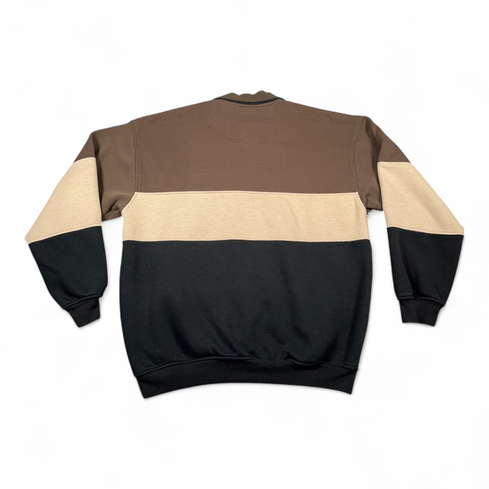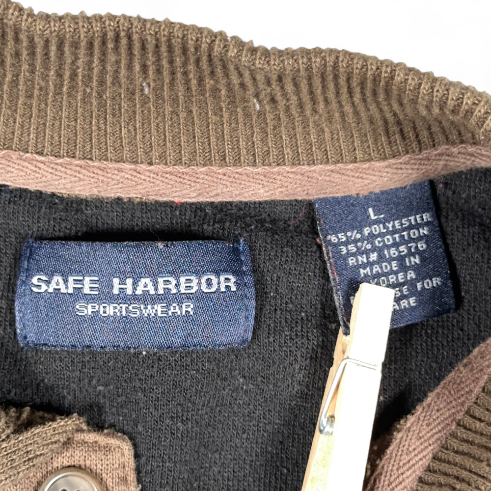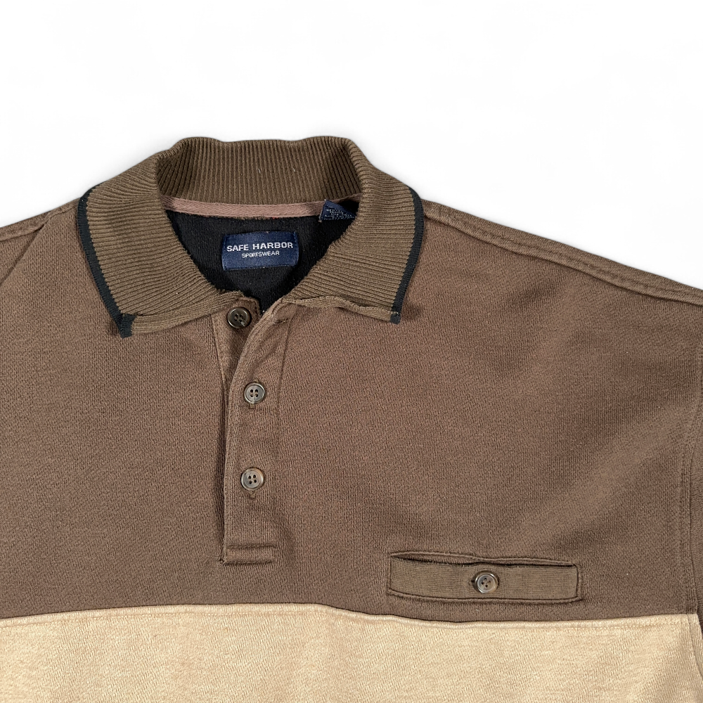 Vintage Safe Harbor Sweater Adult MEDIUM Brown Black Colorblock Fleece Polo 90s