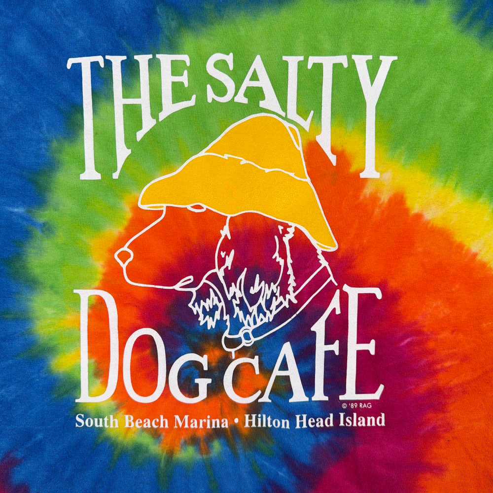Vintage Salty Dog Cafe Shirt Adult EXTRA LARGE Blue Tie Dye Hilton Head 90s