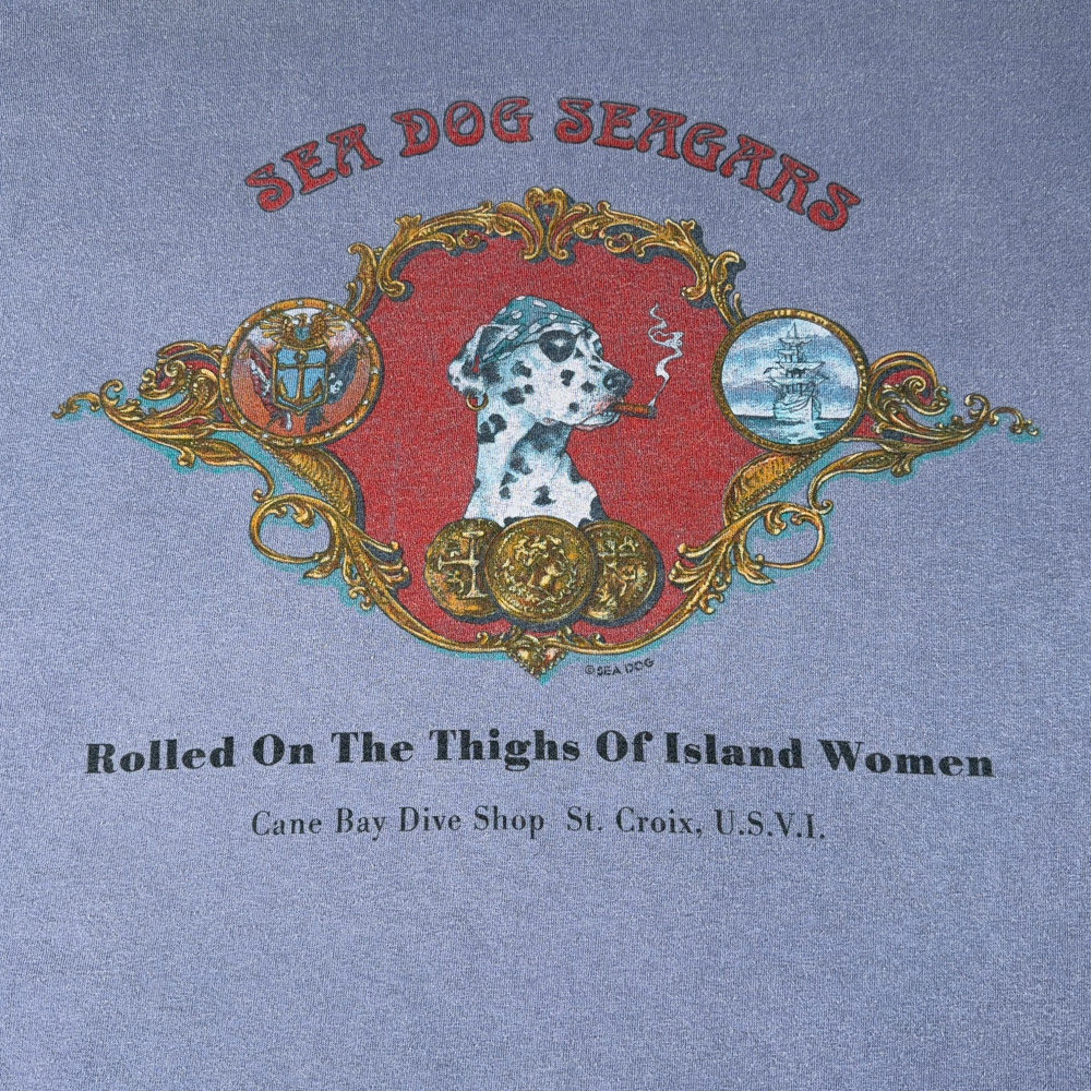 โข Large back graphic “SEA DOG SEAGARS Rolled On The Thighs Of Island Women”