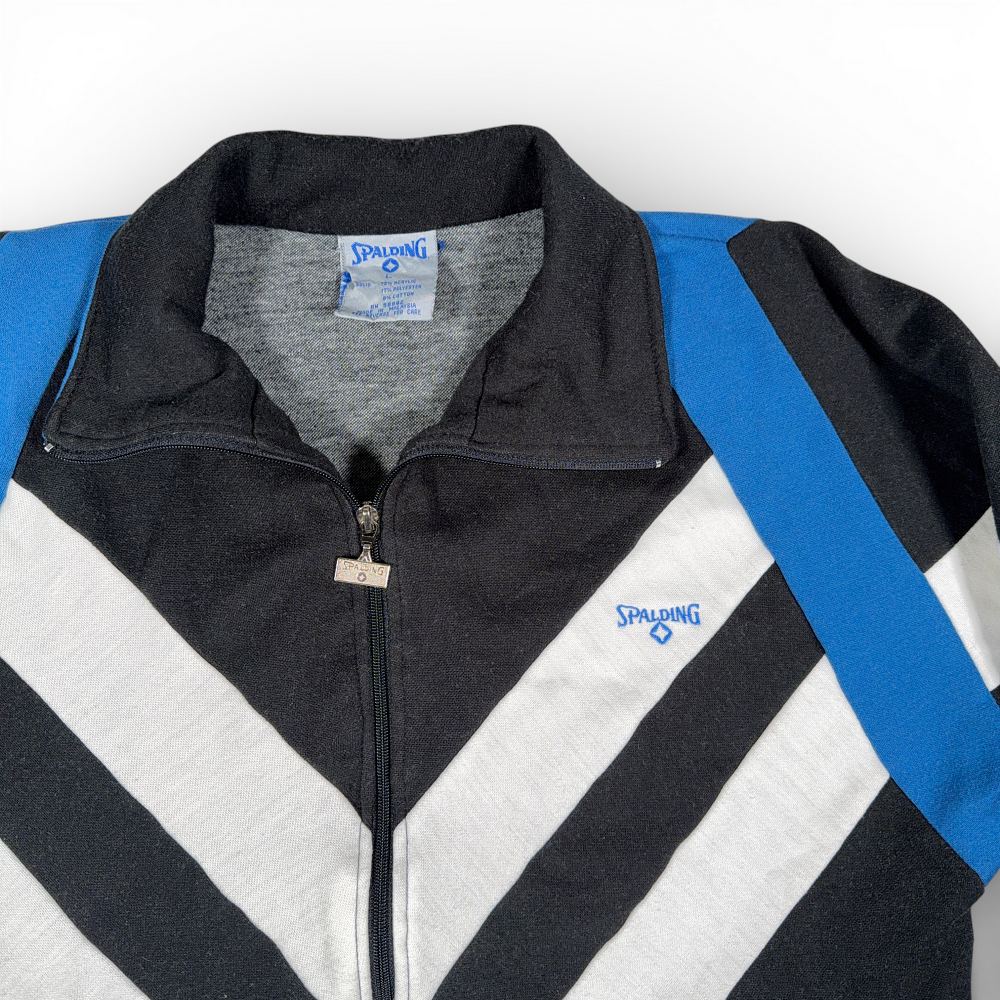 Vintage Spalding Track Jacket Adult LARGE Black White Colorblock Chevron 90s