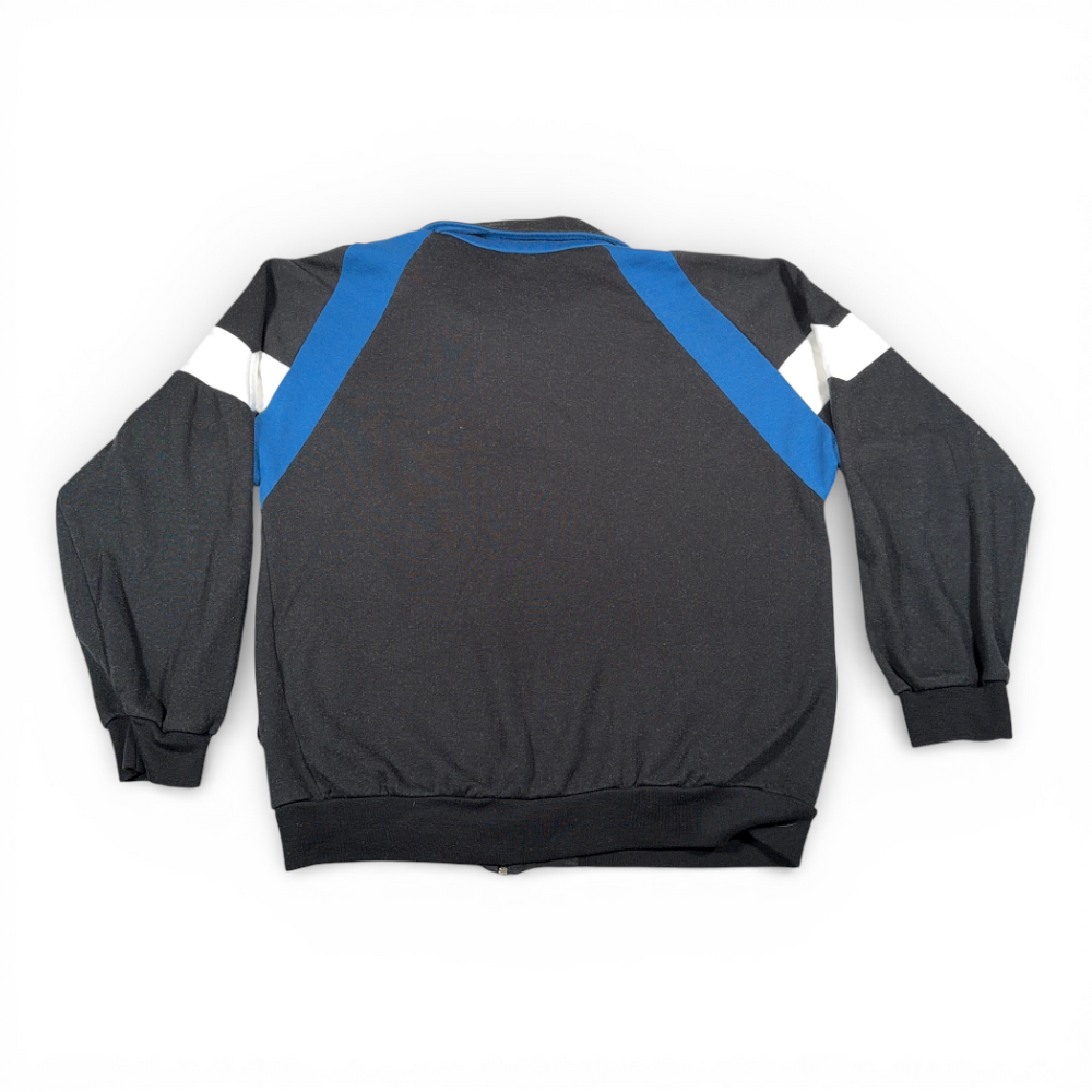 โข 90s vintage black, white, and blue acrylic, polyester, and cotton blend track jacket