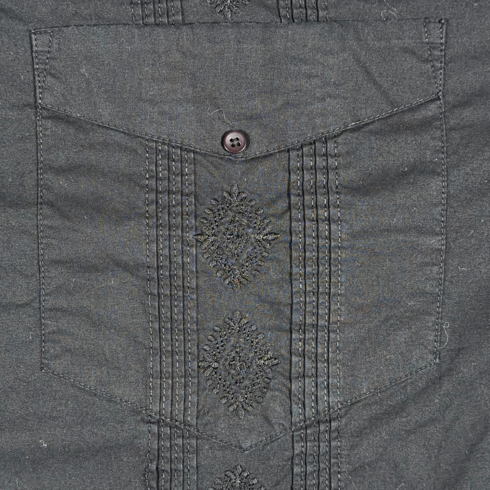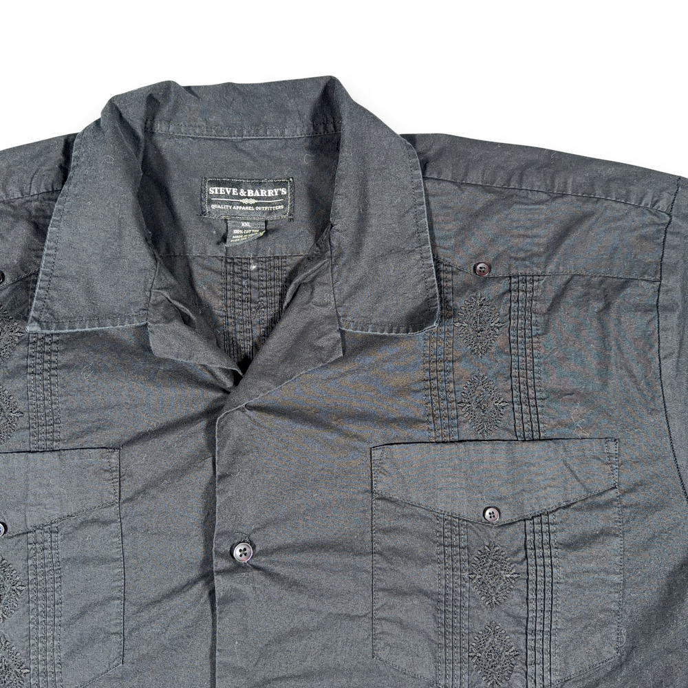 Vintage Steve Barrys Shirt Adult 2XL XXL Black Guayabera Camp Resort Cuban Y2K
