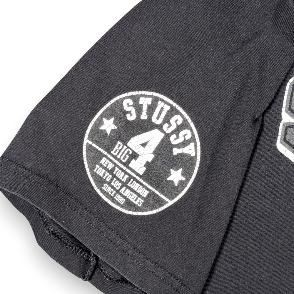 โข Sleeve graphic featuring “STUSSY BIG 4” and city list