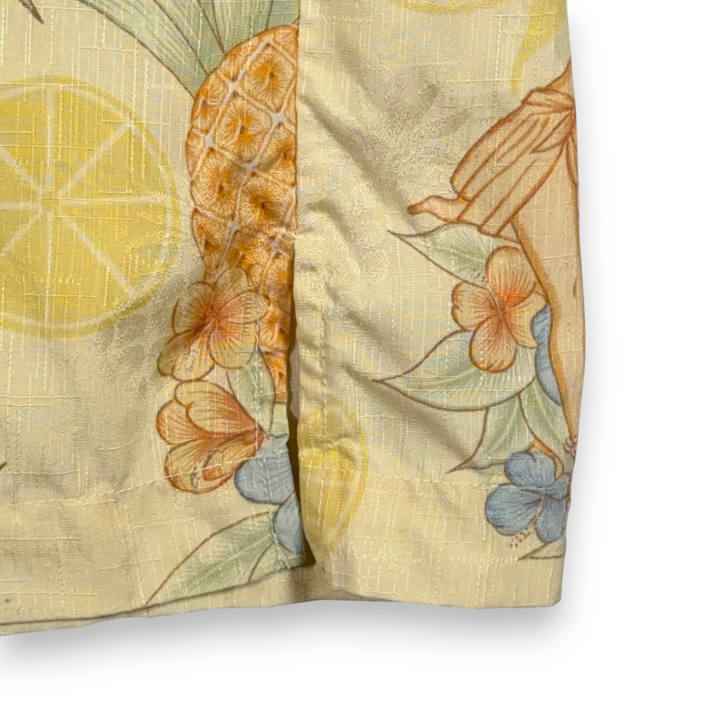 โข Allover graphic of pinup girls with pineapples & lemon slices