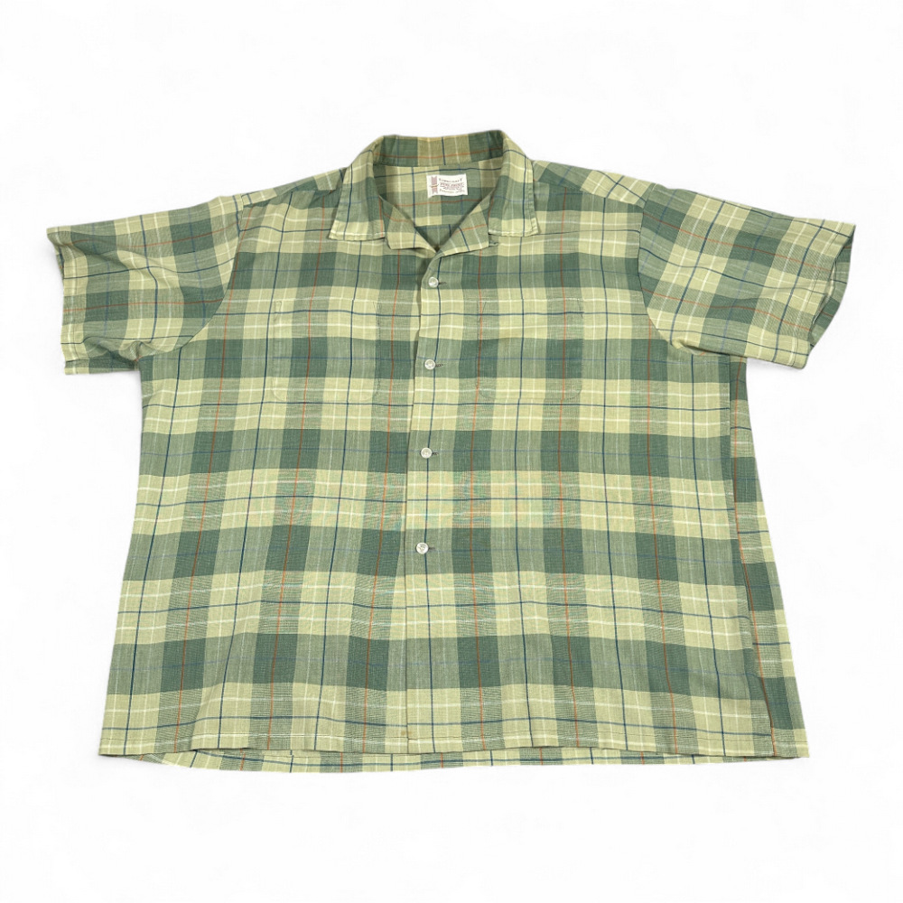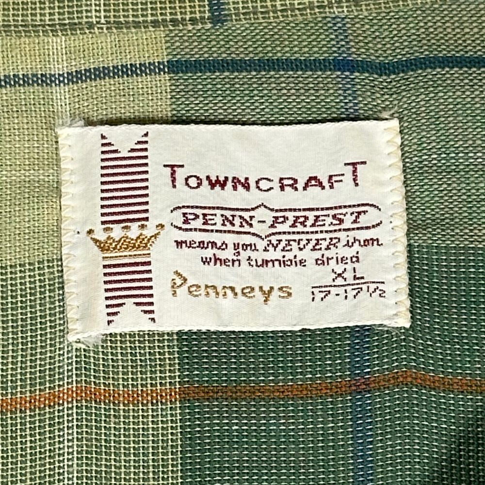 Vintage Towncraft Shirt Adult EXTRA LARGE Green Plaid JC Penneys Loop Camp 60s