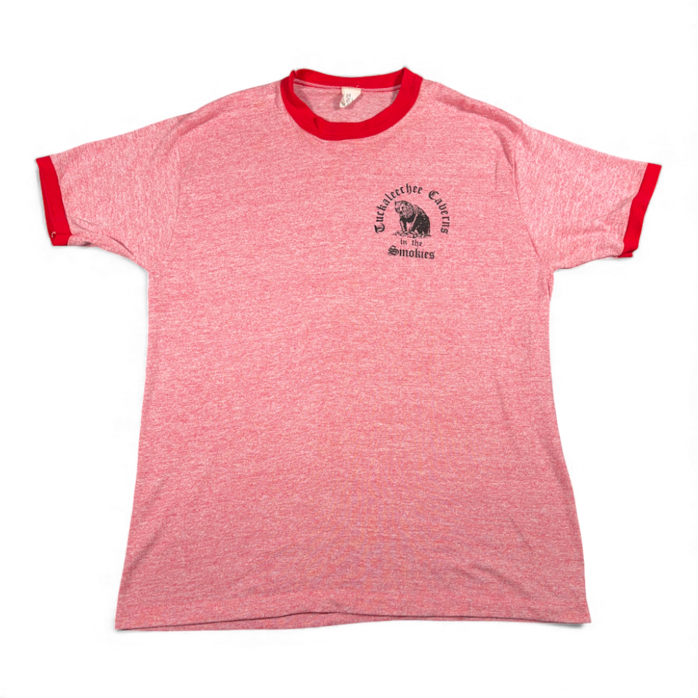 Vintage Tuckaleechee Caverns Shirt Adult LARGE Red Tennessee Ringer Smokies 80s