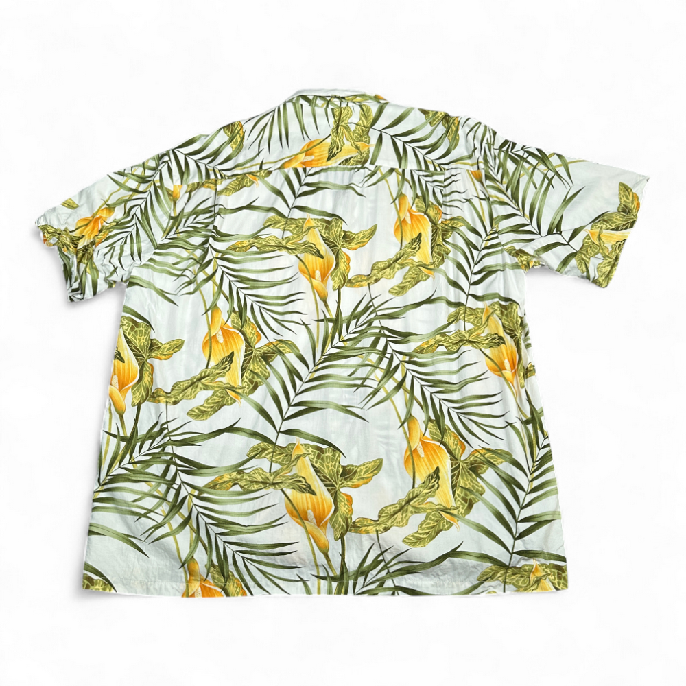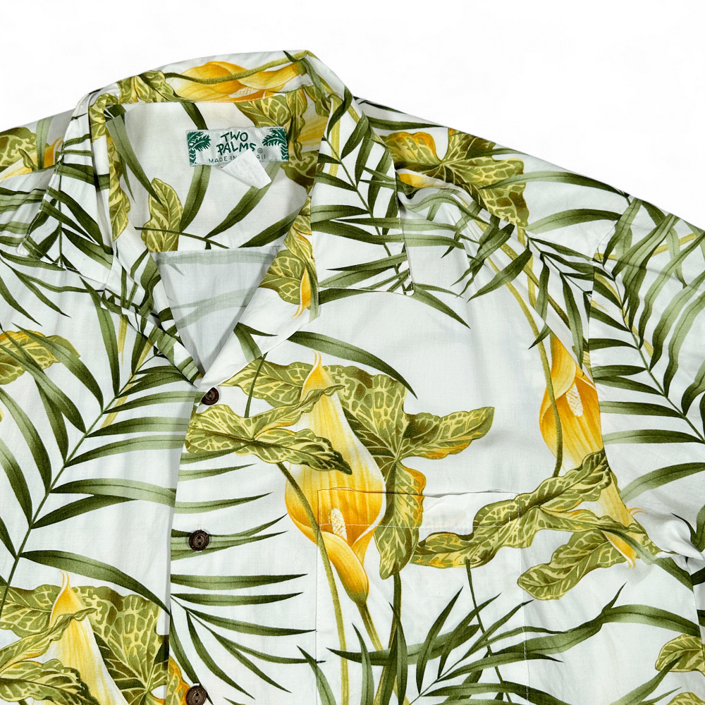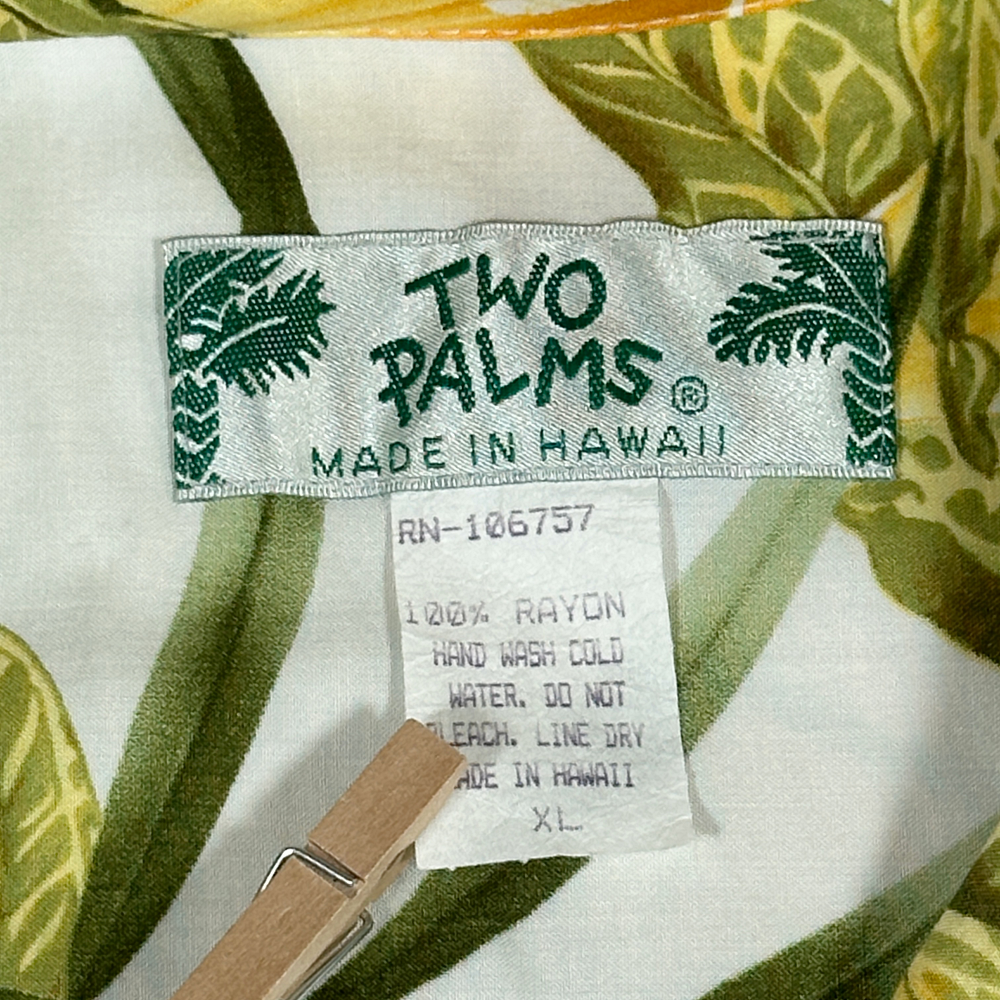 Vintage Two Palms Hawaiian Shirt Adult EXTRA LARGE White Rayon USA Made 80s