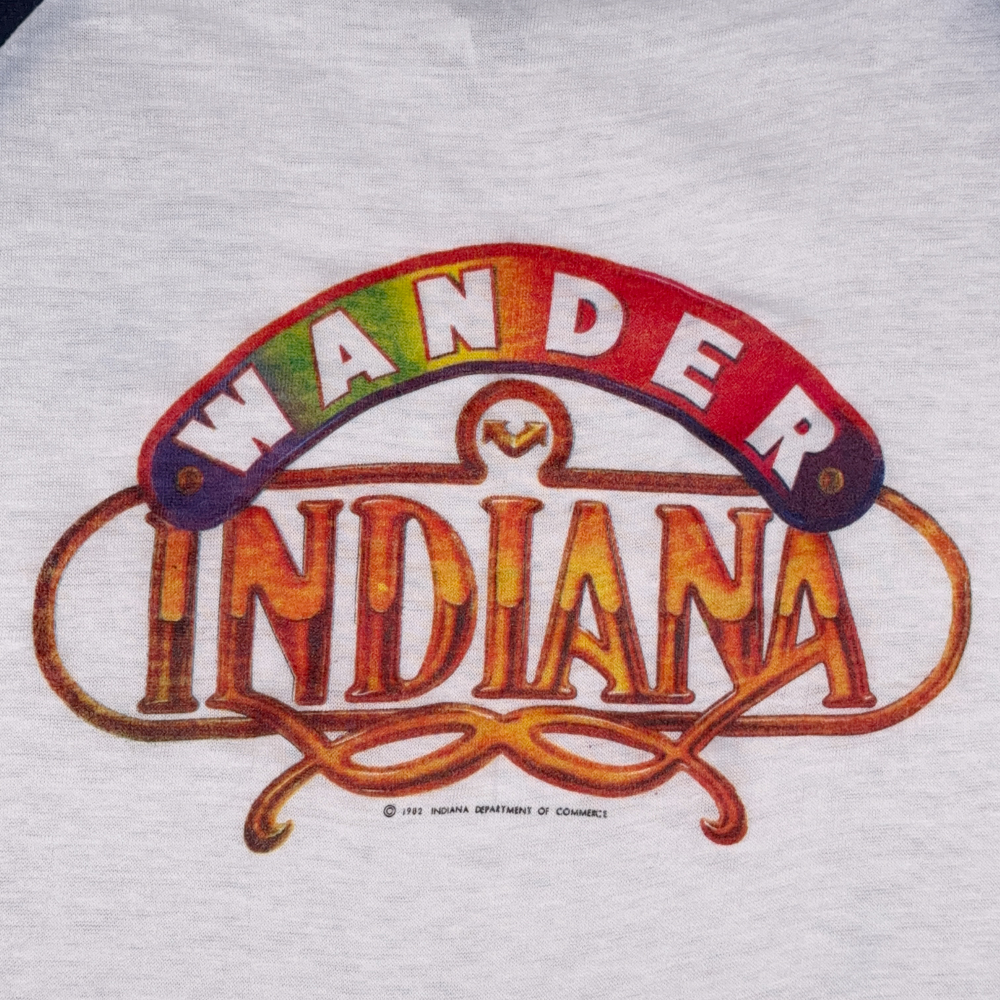 โข “Wander Indiana” with 1982 date and rainbow graphic on front