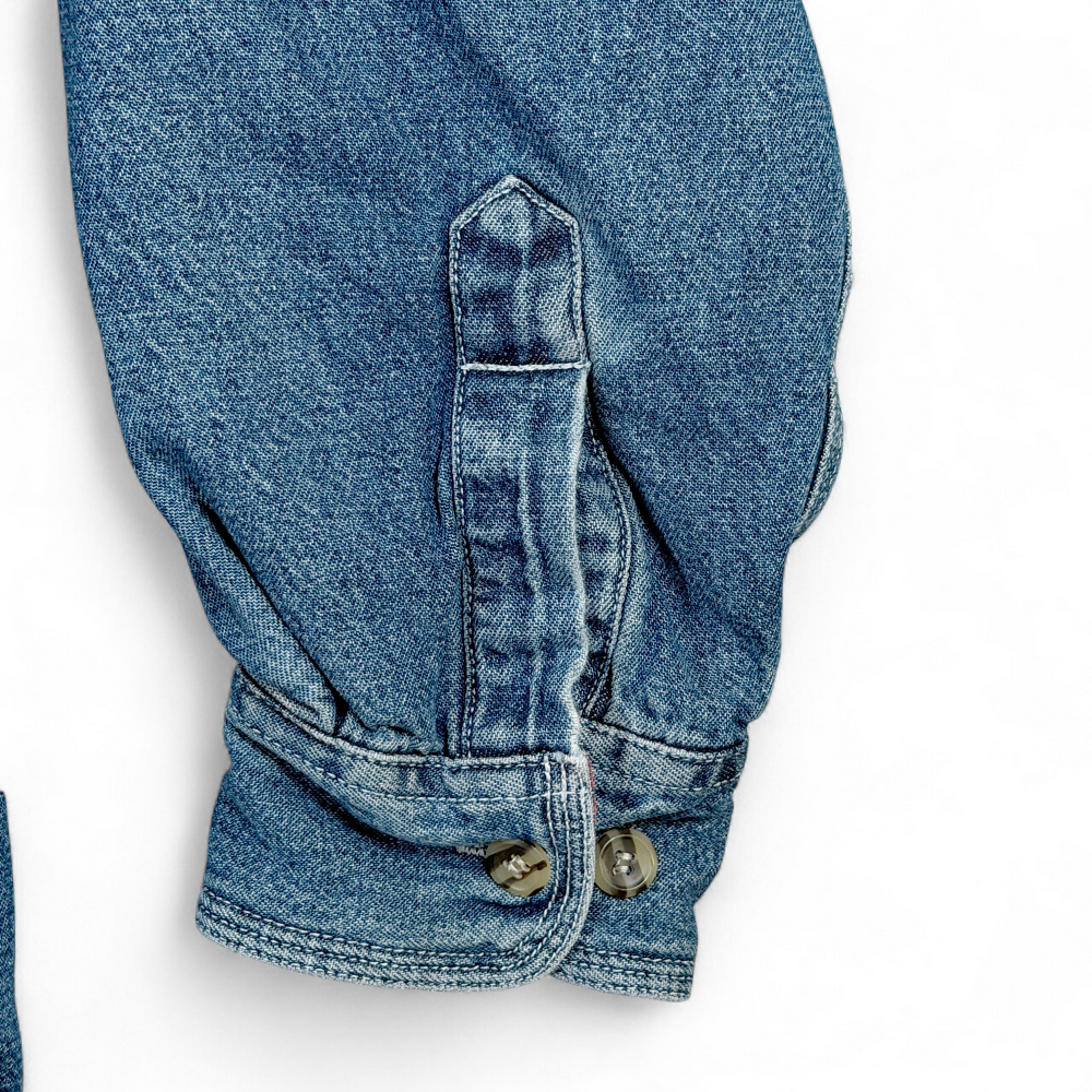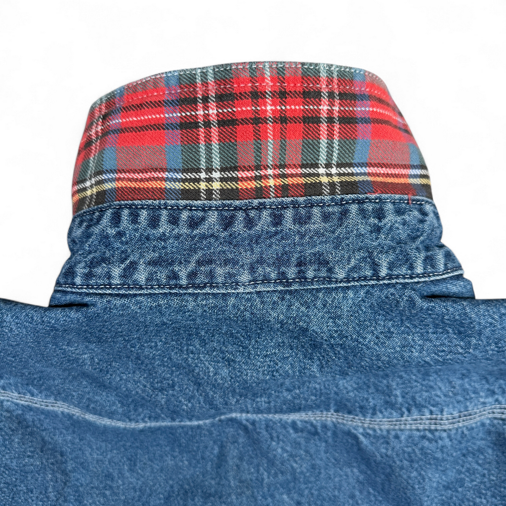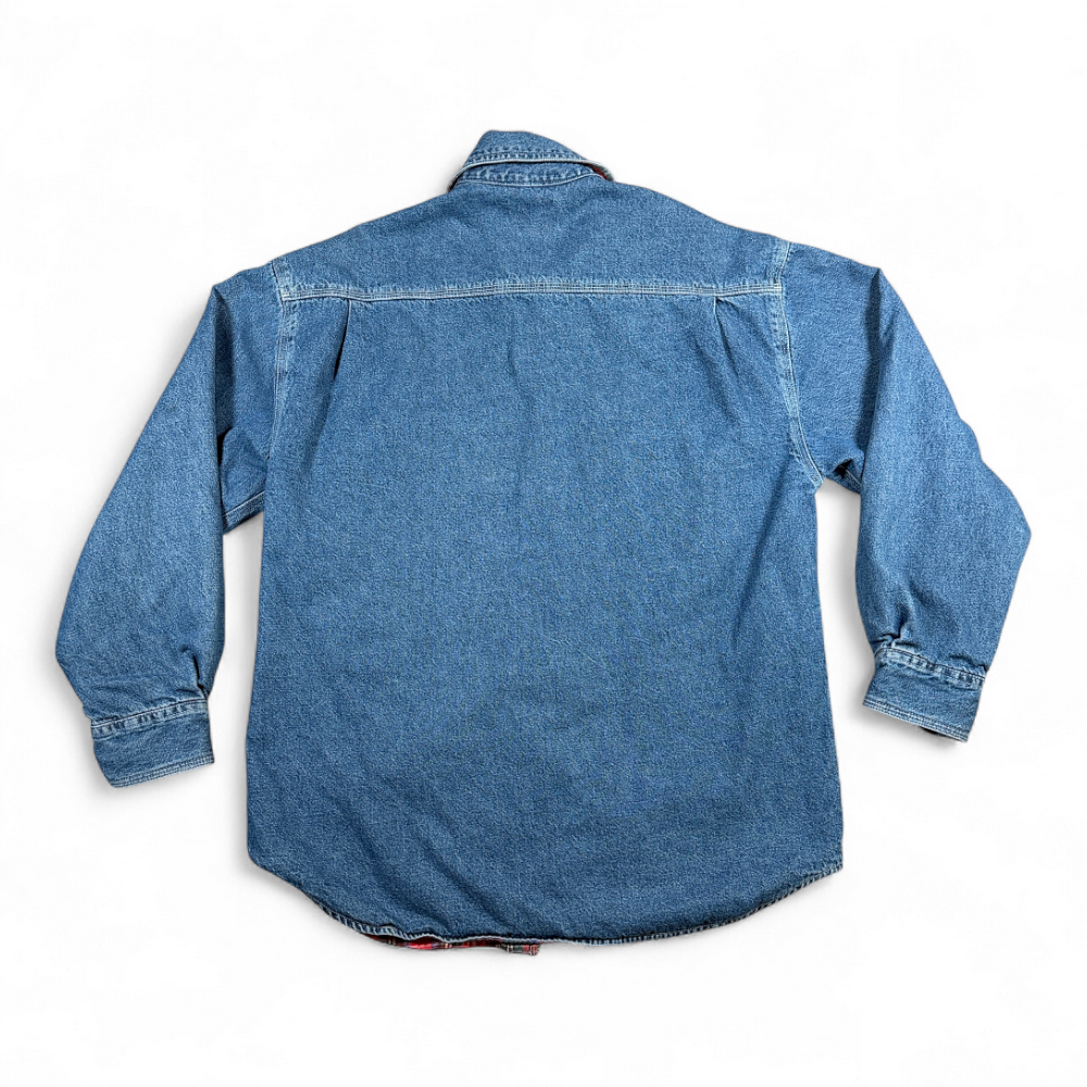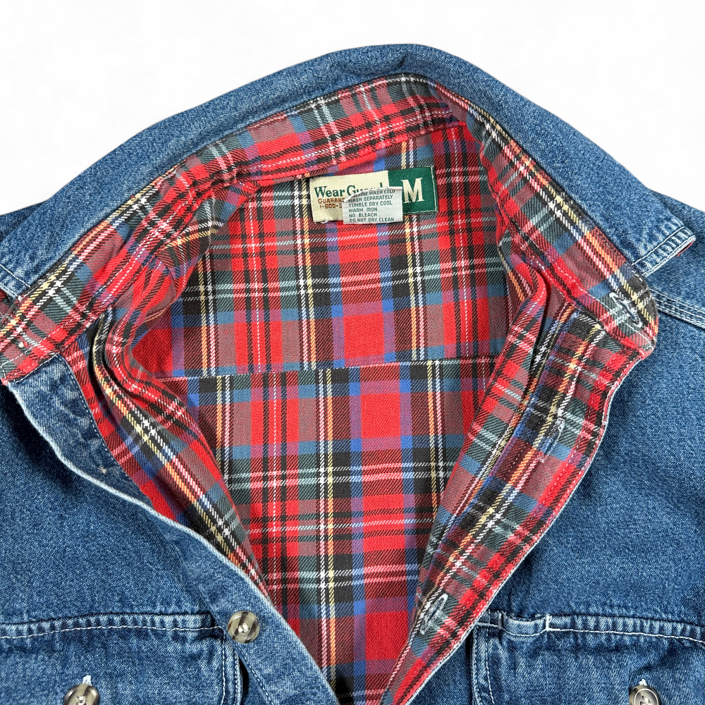Vintage WearGuard Shirt Adult MEDIUM Blue Denim Plaid Flannel Lined Workwear 90s